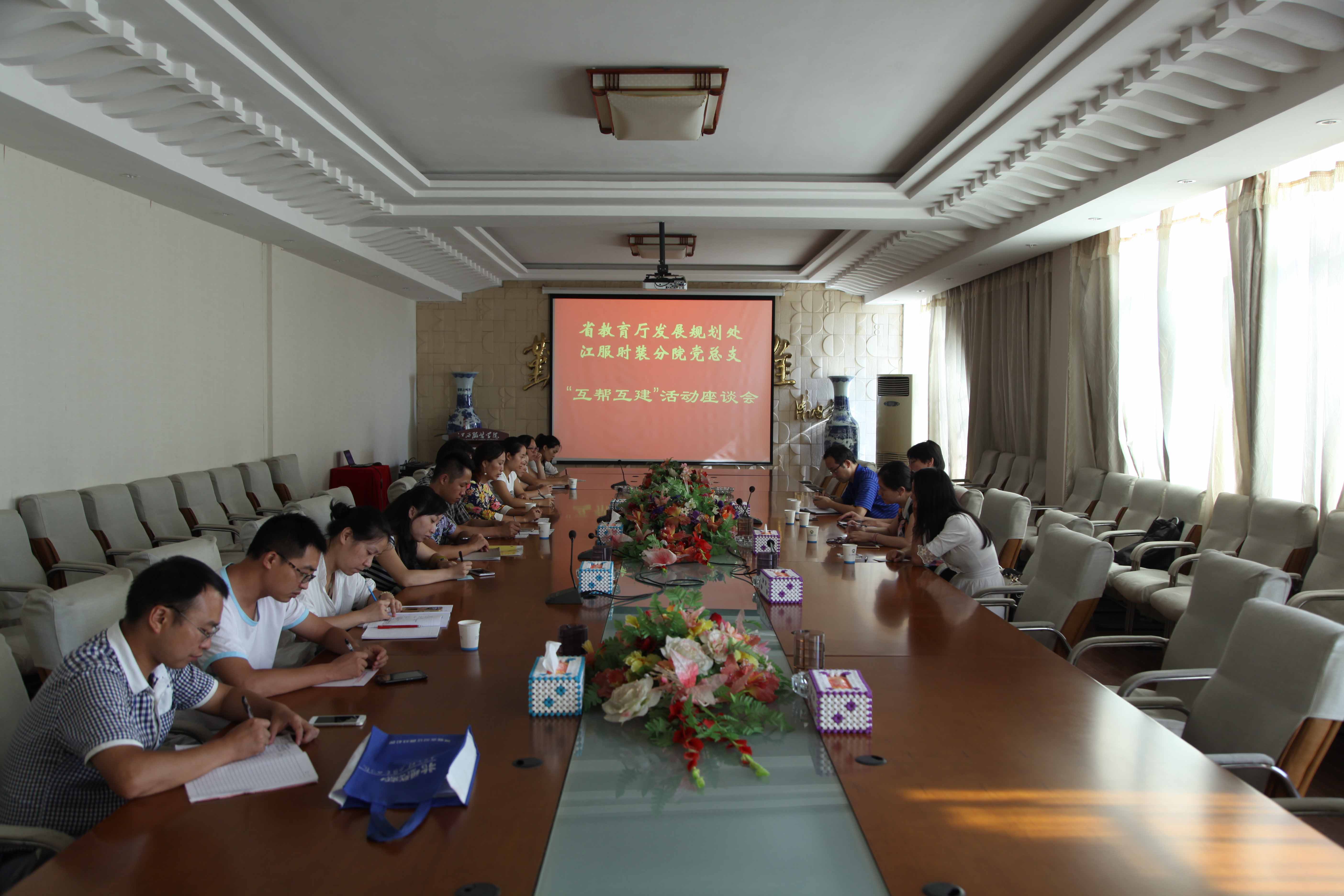 服装报讯(设计分院供稿) 省教育厅发展规划处在开展“三严三实”教育中,与江西服装学院时装设计分院党总支结对子开展“互帮互建”活动,为推进活动开展,9月9日下午,发展规划处沈栩主任一行莅临我校考察交流。