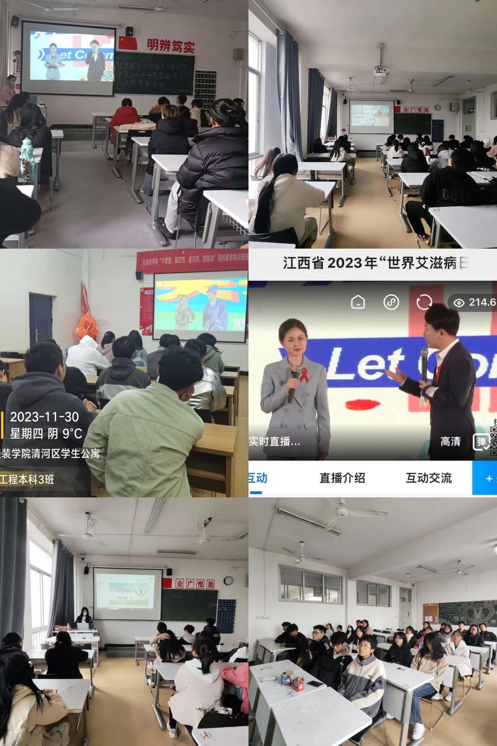 11月30日,我校各学院组织全院学生观看江西省2023年“世界艾滋病日”主题宣传教育活动直播。