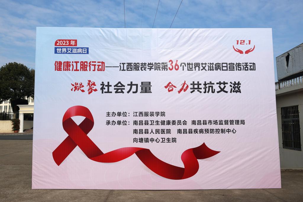 12月1日上午,我校与南昌县卫生健康委员会、南昌县市场监督管理局、南昌县人民医院、南昌县疾病预防控制中心和向塘镇中心卫生院携手在清河校区医务室前举办了主题为“凝聚社会力量,合力共抗艾滋”的宣传活动。