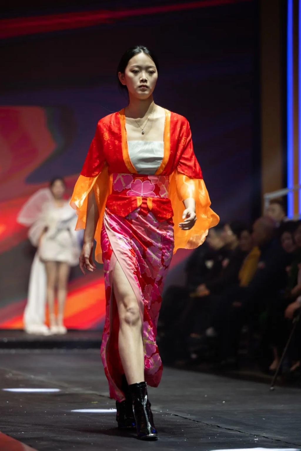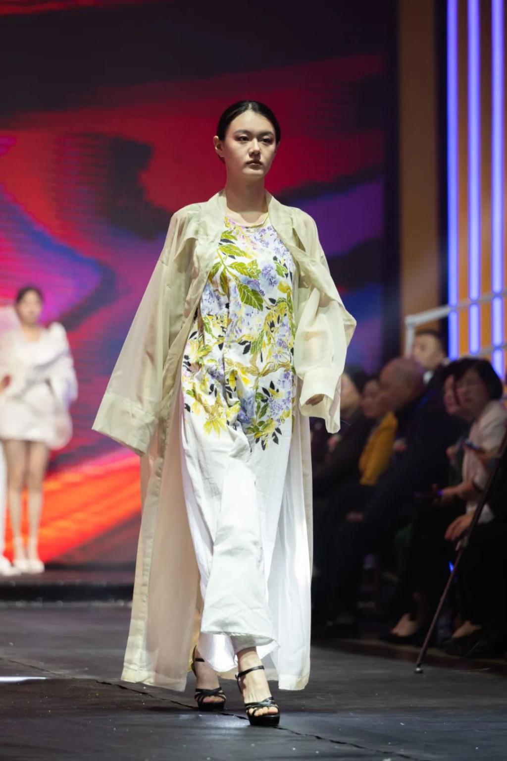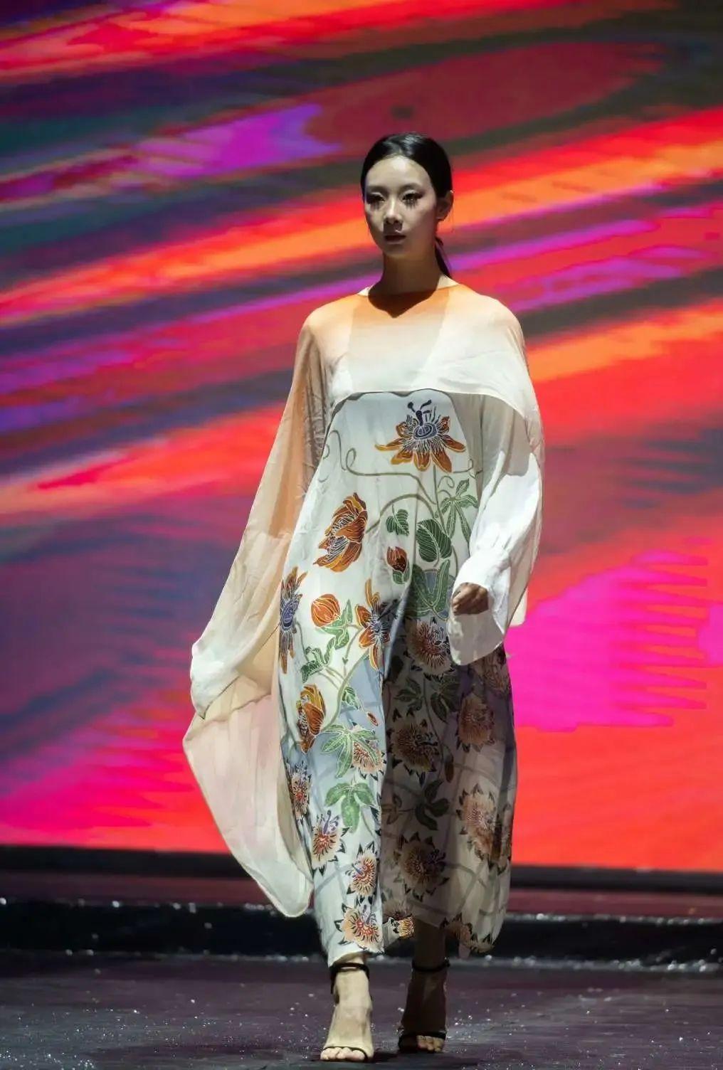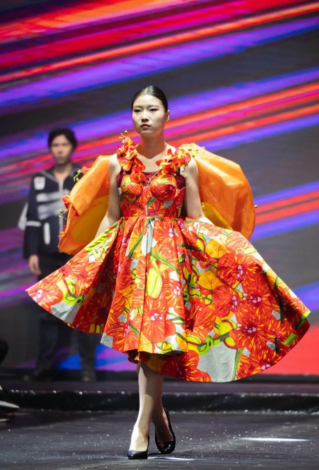 比赛现场,在学校模特专业学生的完美演绎下,35个系列152余套优秀服装设计作品一一进行了展示,他们的作品糅合了大量的传统文化元素和少数民族特色,作品从面料、辅料的选购、款式设计、制版和工艺中充分融合刺绣、面料肌理再造、数码印花、3D打印等工艺手法,大胆探索与时尚服装艺术创新性融合,充分展现了设计师们出色的设计能力、技术水平和时尚品位,让人耳目一新。