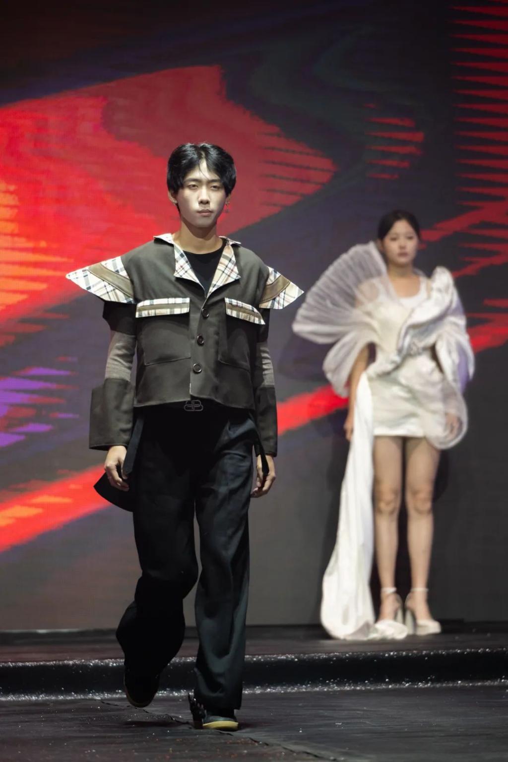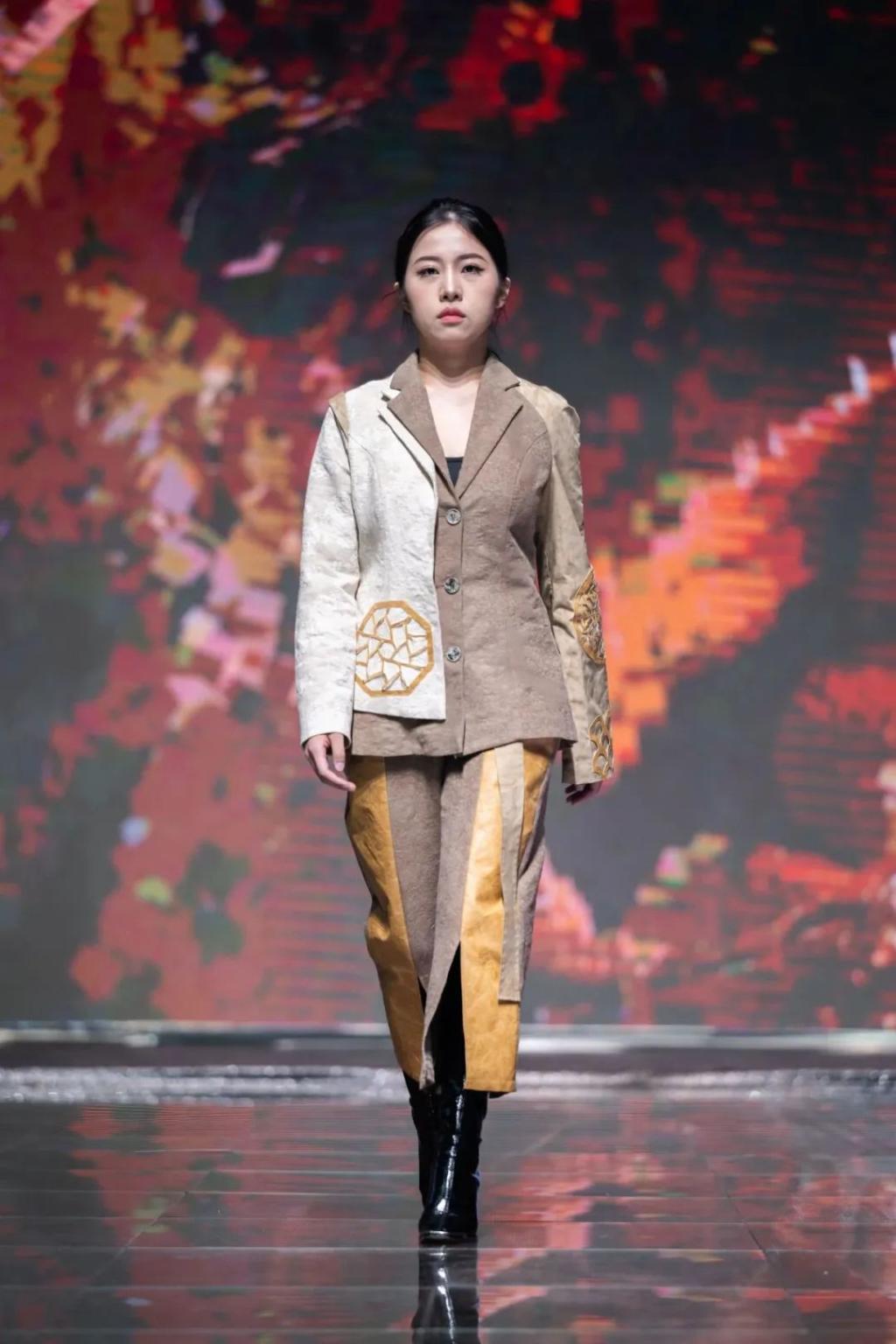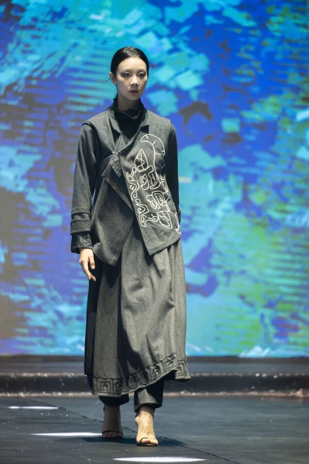 比赛现场,在学校模特专业学生的完美演绎下,35个系列152余套优秀服装设计作品一一进行了展示,他们的作品糅合了大量的传统文化元素和少数民族特色,作品从面料、辅料的选购、款式设计、制版和工艺中充分融合刺绣、面料肌理再造、数码印花、3D打印等工艺手法,大胆探索与时尚服装艺术创新性融合,充分展现了设计师们出色的设计能力、技术水平和时尚品位,让人耳目一新。