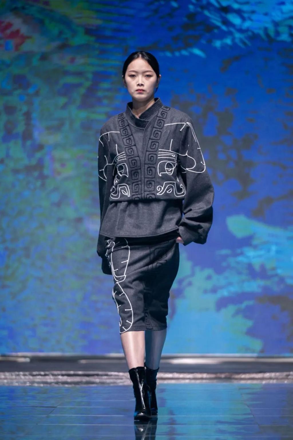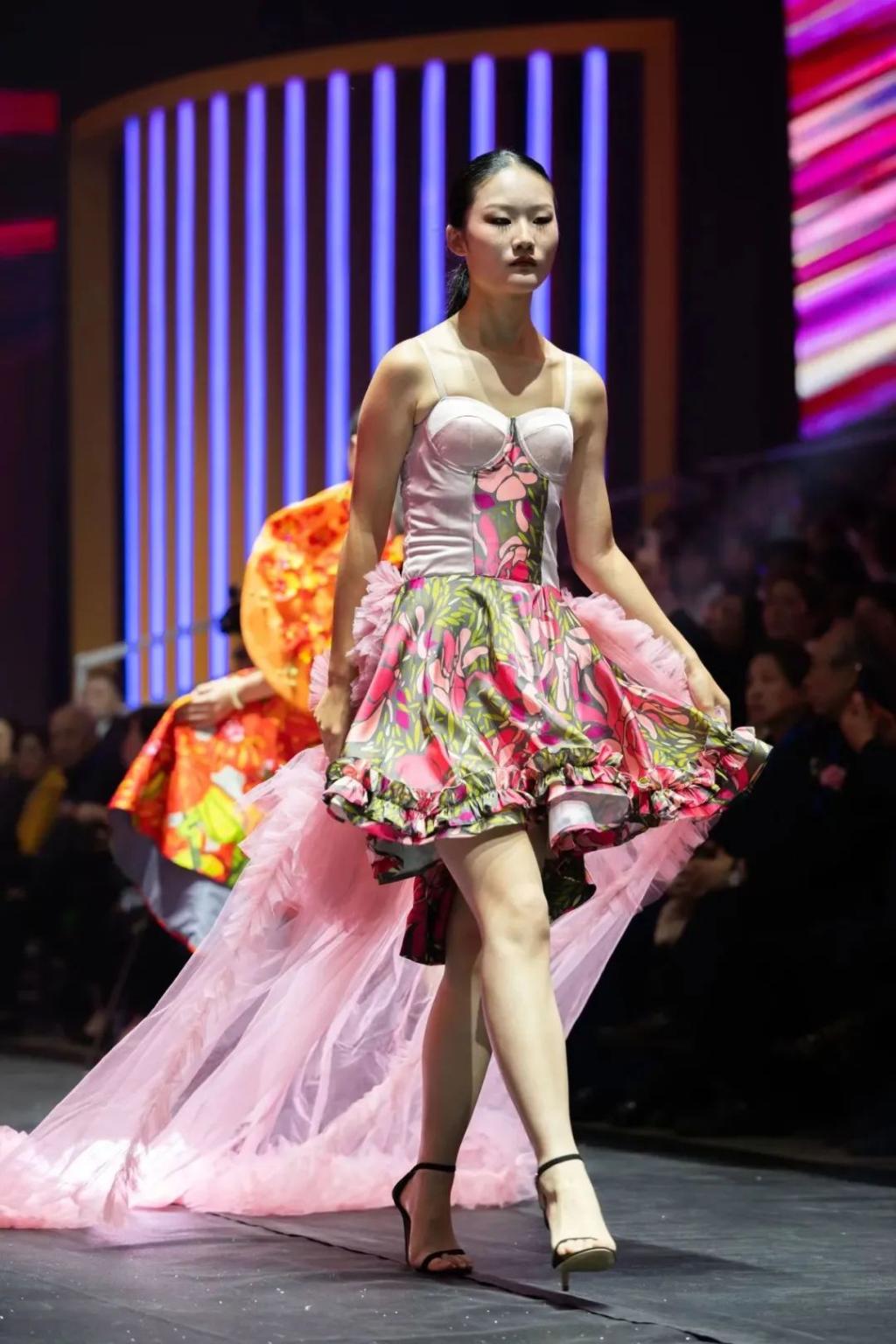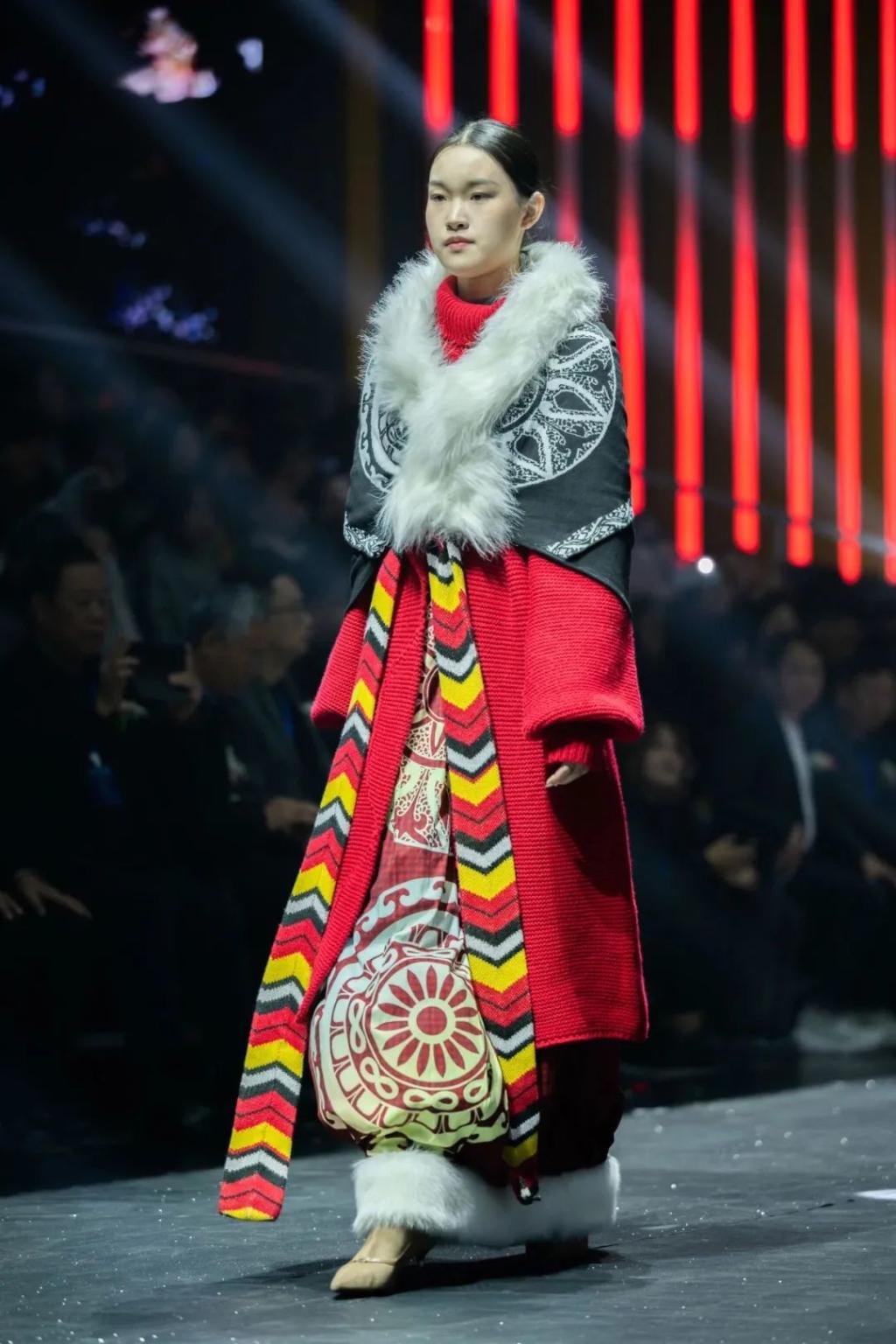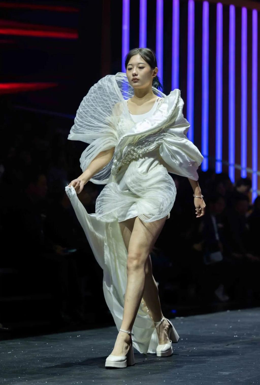 比赛现场,在学校模特专业学生的完美演绎下,35个系列152余套优秀服装设计作品一一进行了展示,他们的作品糅合了大量的传统文化元素和少数民族特色,作品从面料、辅料的选购、款式设计、制版和工艺中充分融合刺绣、面料肌理再造、数码印花、3D打印等工艺手法,大胆探索与时尚服装艺术创新性融合,充分展现了设计师们出色的设计能力、技术水平和时尚品位,让人耳目一新。