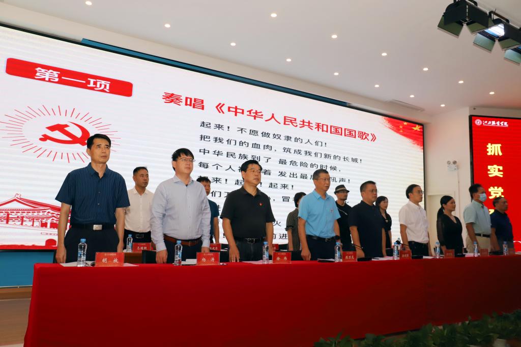 新闻中心讯 “我志愿加入中国共产党,拥护党的纲领,遵守党的章程……”江西服装学院全体师生党员面对鲜红党旗,通过“云”上宣誓,重温入党之时的铮铮誓言。6月30日下午,在中国共产党诞辰99周年纪念日这个特殊历史时刻,我校在思贤楼报告厅隆重召开党的建设和思想政治工作会议暨“七一”主题活动启动仪式。理事长涂顺强为大会致辞,校党委书记、督导专员陈付龙作题为“坚持立德树人根本任务、夯实党建思政工作基础,全面提升学校党的建设与思想政治工作水平”的主题报告,校党委副书记、校长陈万龙主持会议。