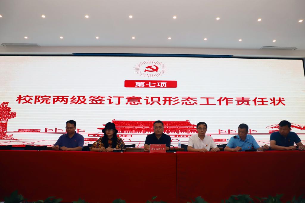 会上,校党委委员、组织部部长陈翠娥宣读了《关于印发〈江西服装学院基层党建工作考核办法〉的通知》。校党委副书记、宣传部部长张建荣宣读了《关于进一步加强意识形态工作责任制的实施办法》,随后,校领导与二级学院签订了意识形态工作责任书。