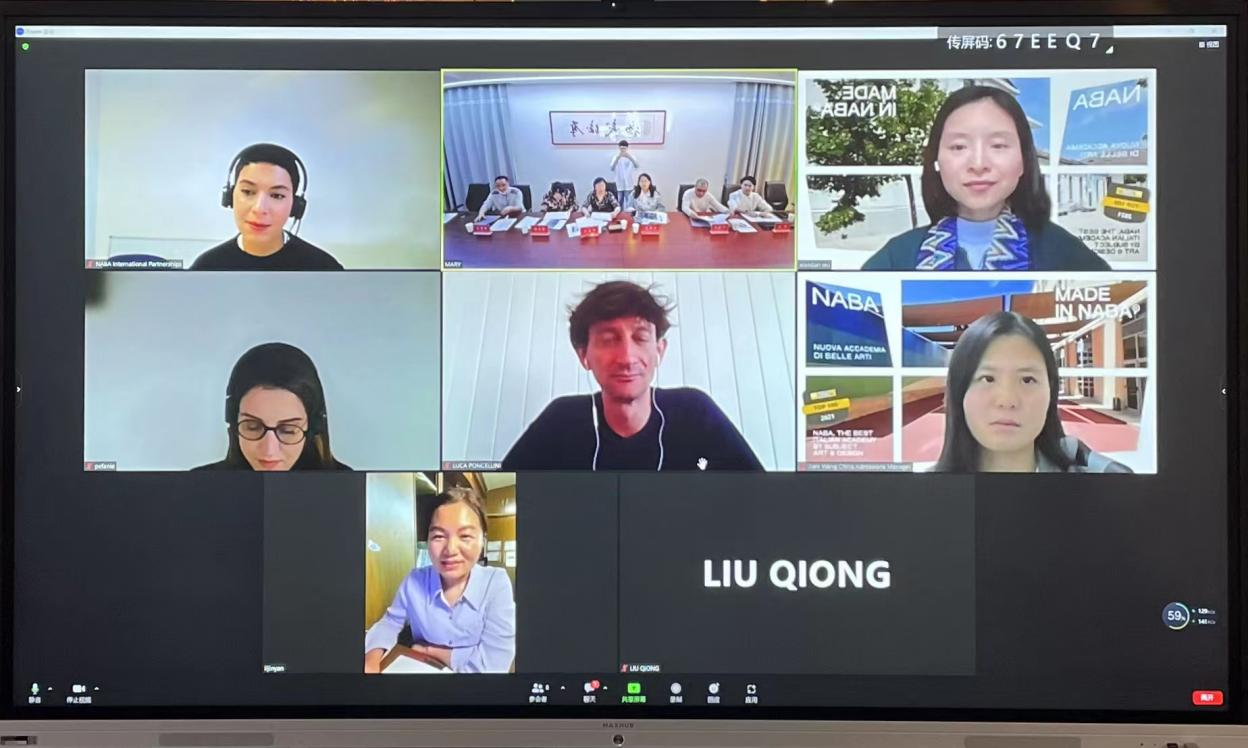 新闻中心讯(文/国际交流与合作处 吴铮)11月11日下午,我校与意大利NABA新美术学院校际合作洽谈会在线上举行。意大利NABA新美术学院时尚系院长科隆巴·莱迪、国际处负责人玛丽亚·贾比尔、设计与应用艺术系院长卢卡·庞切利尼、中国区合作负责人吴晓丹等意方高校相关领导以及我校外事委员会副主任委员甘应进、国际交流与合作处处长助理李金燕、教务处副处长隋丹婷、服装工程学院院长陈娟芬、服装设计学院副院长刘琼、时尚传媒学院副院长李有为、服装工程学院院长助理叶海滨等领导参加了本次会议。此次线上会议是两校在沟通与对接双方合作项目上的首次会谈。