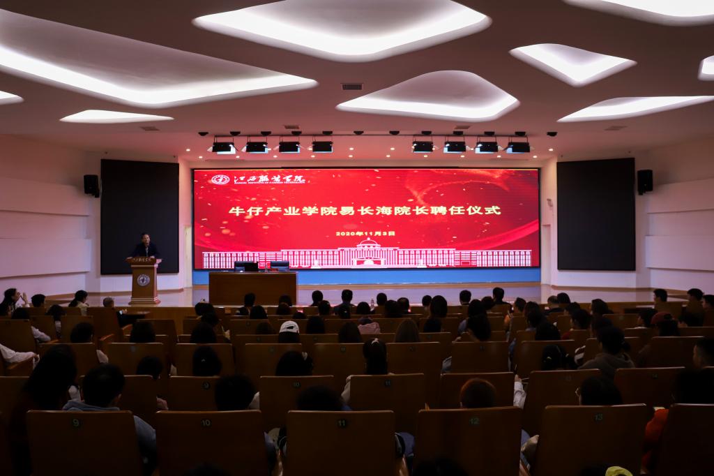 新闻中心讯 11月3日下午,江西服装学院牛仔产业学院成立仪式在思贤楼报告厅隆重举行。学校理事长涂顺强、校务委员会副主任涂燕萍等校领导以及400余名师生代表出席成立仪式,仪式由副校长陈东生主持。江西省现代服装工程技术研究中心主任易长海教授受聘我校牛仔产业学院院长。