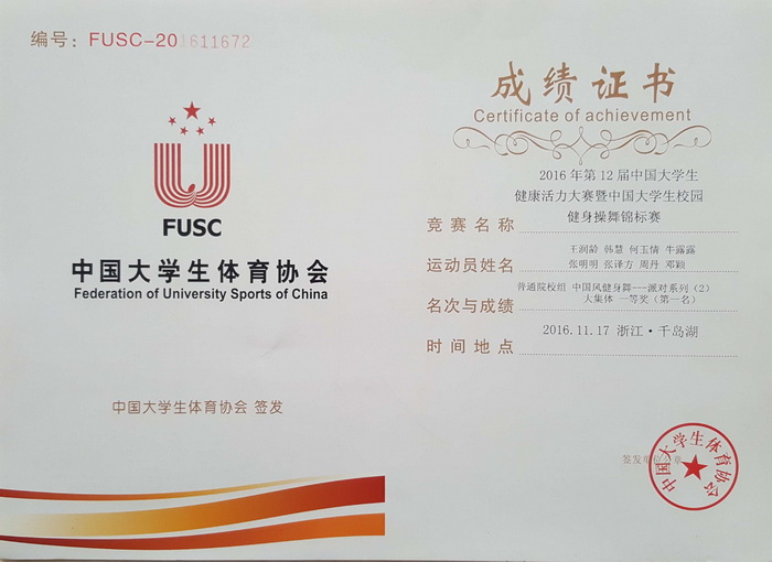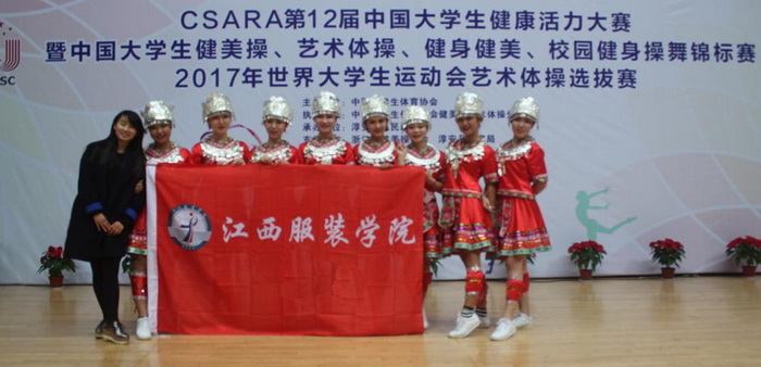 服装报讯 由中国大学生体育协会主办的2016年第十二届中国大学生健康活力操暨中国大学生校园健身瑜伽锦标赛和健身操舞两项比赛于11月15日至19日在浙江千岛湖举行。我校瑜伽队和健美操队一年来的积极备战和刻苦训练换来了胜利的果实,在比赛中赛出了江服学子的风采,展现了我校大学生的良好精神风貌。在瑜伽锦标赛中,我校瑜伽队荣获中国大学生健身瑜伽集体二级动作第二名和瑜伽女子双人二级第二名,徐红老师被评为优秀教练员;在健康活力操比赛中,我校健美操队荣获中国风健身操第一名和轻器械扇子第二名,陈纯老师被评为优秀教练员。