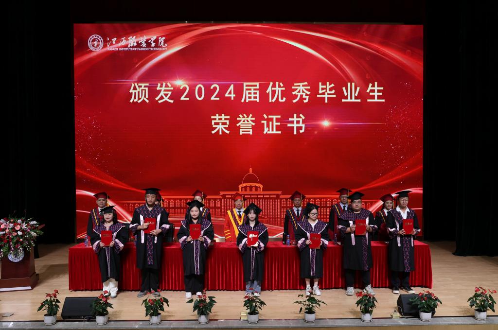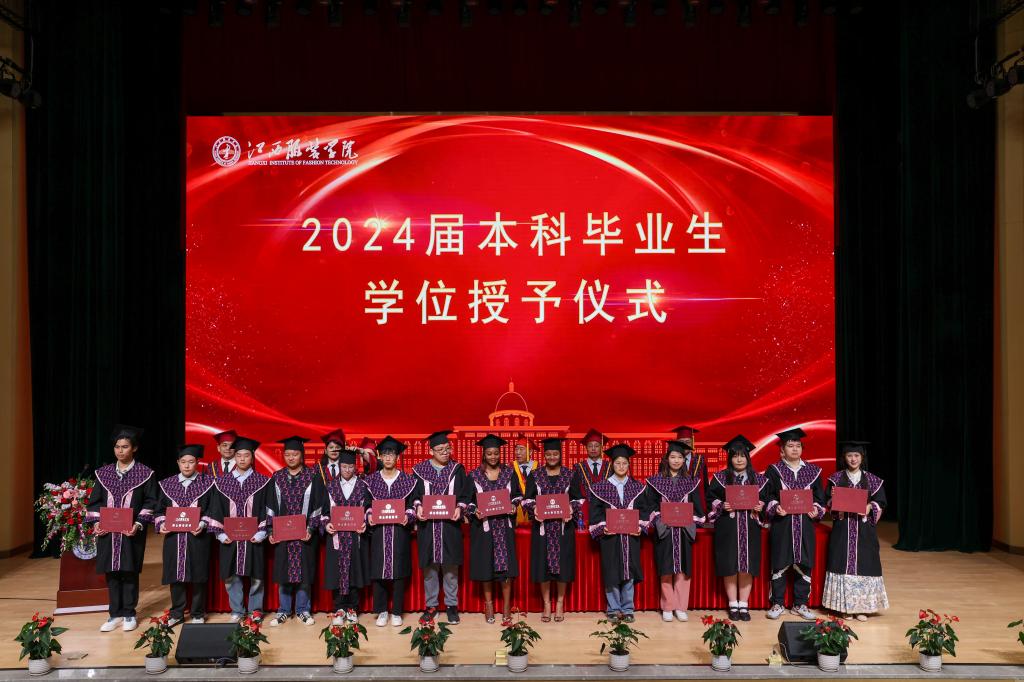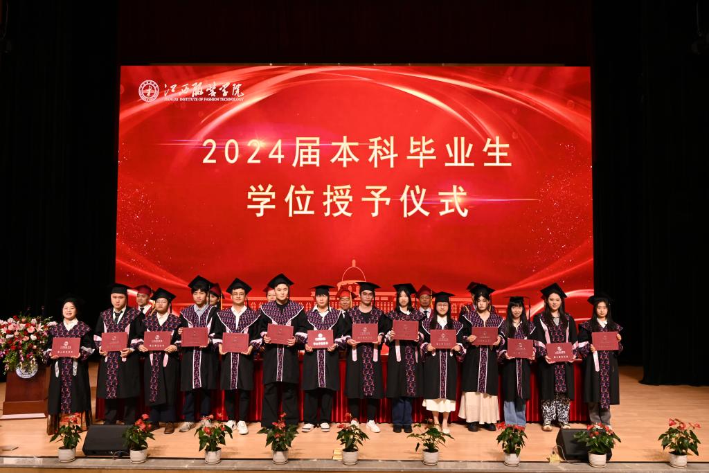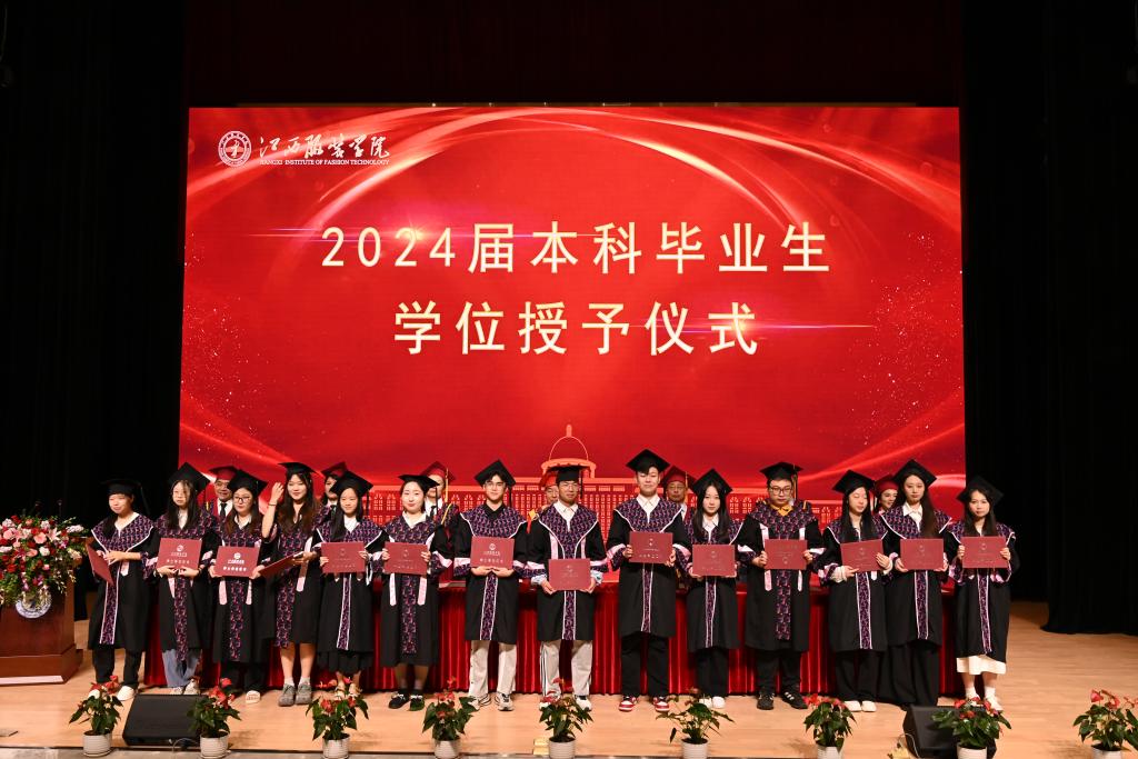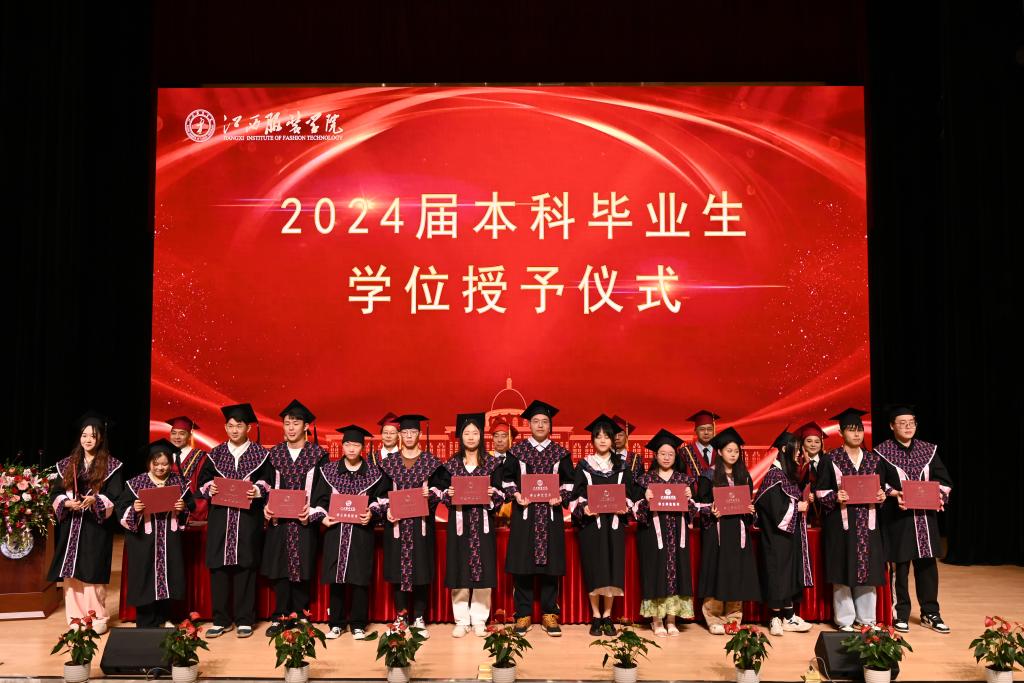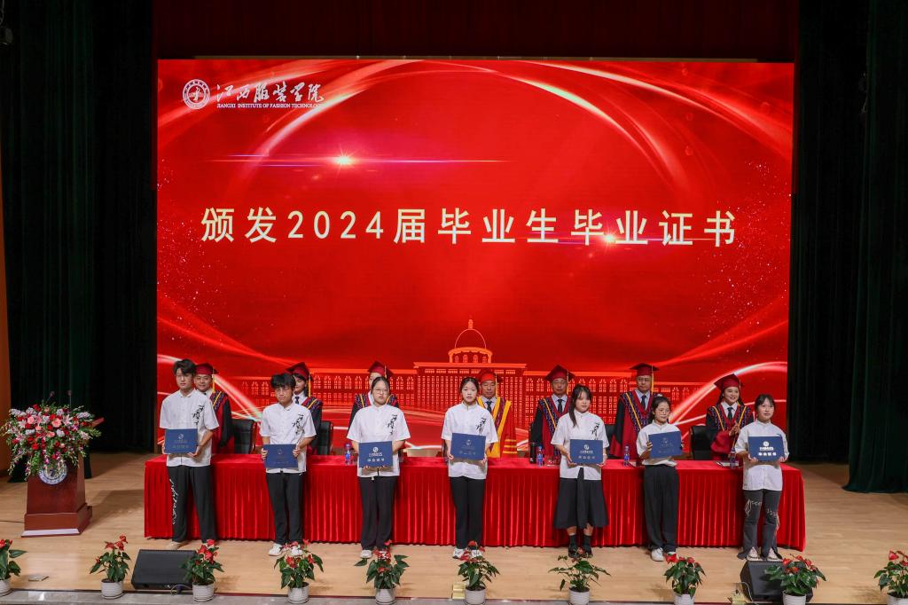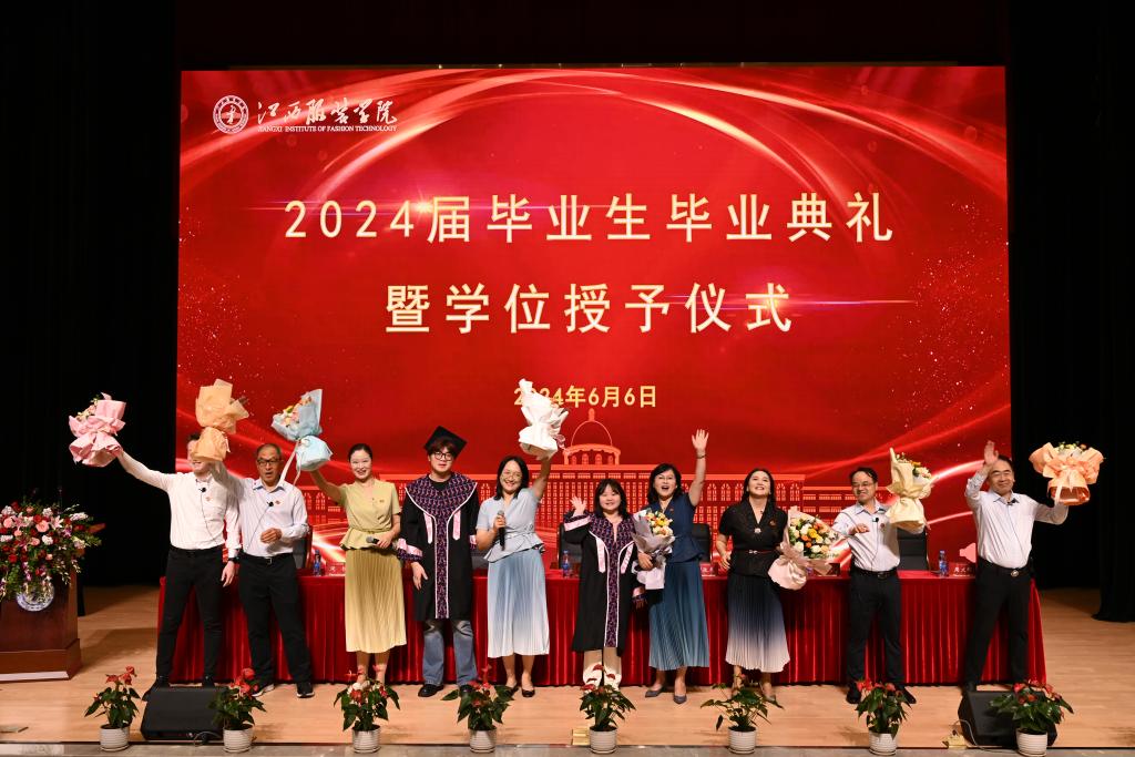 “赣水之畔,名郡豫章,绛帐高张,青衿满堂。一笔一画绘版样,千针万线织霓裳。缝绣镶缀注真情,冠履章服润华邦。艺之隽才,雅集一方,美之基因,靓我服装……”典礼最后,与会师生齐声合唱江服校歌,在一片优美激昂的歌声中,毕业典礼圆满结束。2024届毕业生们将正式告别镌刻着他们青春足迹的江服校园,驶向更广阔的人生舞台,在祖国大地上书写属于江服人的灿烂华章。