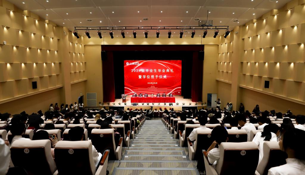 校长助理闵悦宣布了《关于表彰2024届优秀毕业生的决定》,经各学院评选推荐,最终授予321名学生“优秀毕业生”称号。