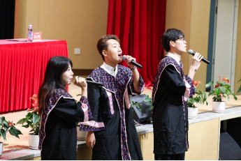 “别害怕现在的离别啊,微笑着挥挥手说再见吧,明天就等在下一个路口……”典礼正式开始前,各学院院长和毕业生演唱了《启程》《不说再见》《你曾是少年》《知足》《明天你好》等暖场歌曲。现场大屏幕播放了学校精心制作的毕业纪念片,温馨感人的画面和寄语,带领同学们重拾美好的校园时光。