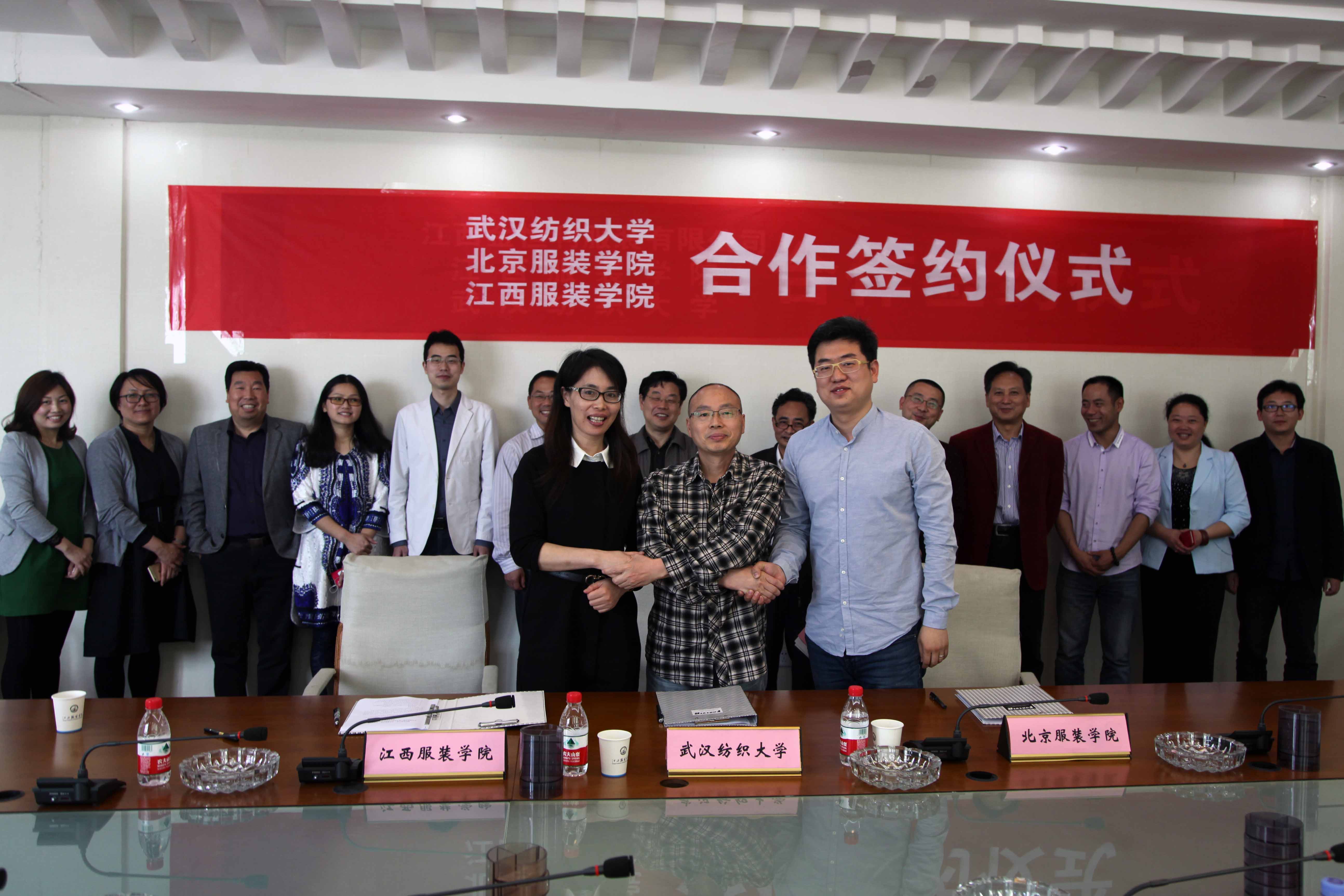 服装报讯 4月29日上午,武汉纺织大学、北京服装学院、江西服装学院三校合作会议暨签约仪式在行政楼二楼会议室隆重举行。武汉纺织大学湖北省牛仔服装工程技术研究中心主任易长海教授、武汉纺织大学科技处副处长晏伟、北京服装学院北京市服装产业数字化工程技术研究中心主任黄海峤博士、江西金恒利服装有限公司总经理任建平、江西服装学院副校长温容祯等领导共同出席此次签约仪式。