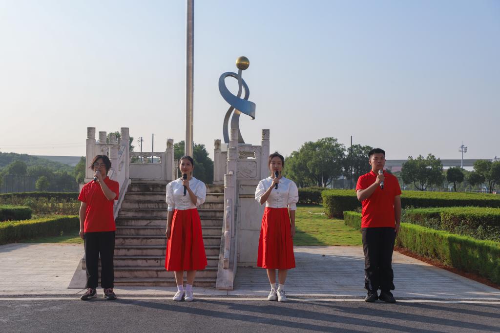升旗仪式后,由校团委学生副书记刘歆领誓,师生们面对鲜艳的团旗,重温入团誓词——“我志愿加入中国共产主义青年团,坚决拥护中国共产党的领导,遵守团的章程,执行团的决议,履行团的义务,严遵团的纪律,勤奋学习,积极工作,吃苦在前,享受在后,为共产主义事业而奋斗。”表达了师生们坚定信念,顽强拼搏,用实际行动报效祖国,积极投身祖国的现代化建设事业的决心。