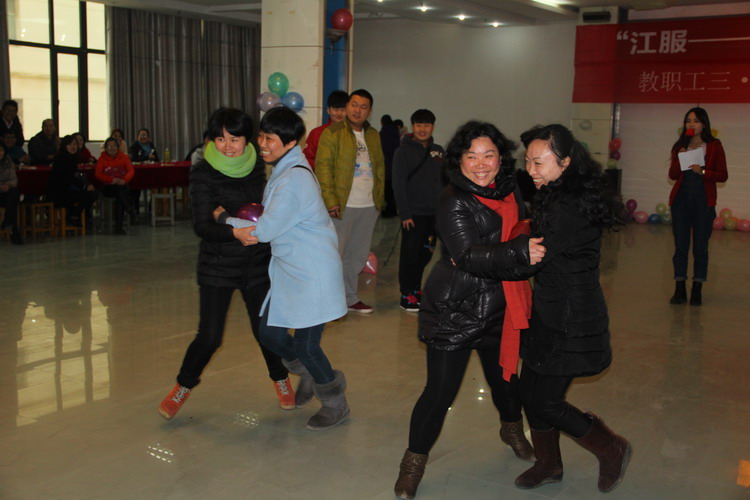 “江服——我们的幸福家园”横幅下,联欢会上彩球拥簇,一派热闹祥和的气氛。教职工们分成十个工会小组开展了一系列趣味游戏节目,有搞笑怪异的夹气球、妙趣横生的击鼓传花、紧张激烈的猜成语、激动人心的运球接力等。现场欢声笑语不断,广大教师们纷纷表示玩得很开心。游戏参与者均获得我校提供的精美礼品。随后,姜大勇等老师激情演唱、众位老师的交谊舞都赢得现场的阵阵掌声;最后的幸运大抽奖将联谊会推向高潮。