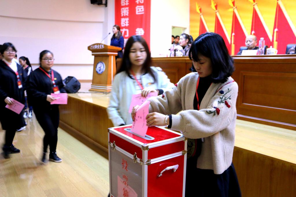 校党委副书记徐红先宣读了以无记名投票方式差额选举产生的11名共青团江西服装学院新一届委员会委员名单。