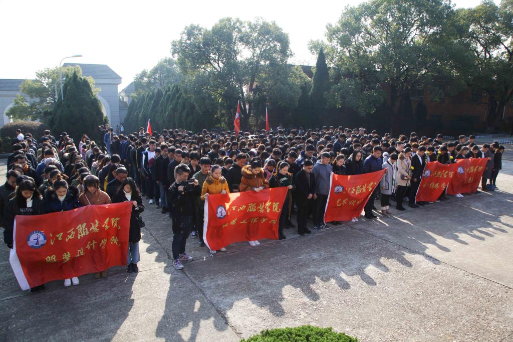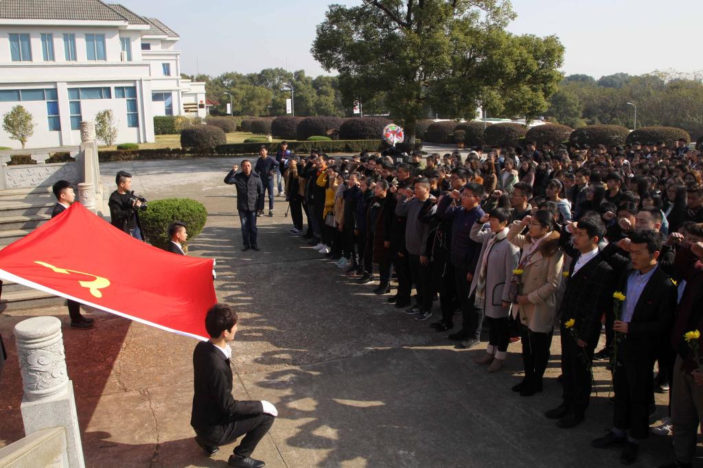 服装报讯(记者/林慧萍 摄影/张柯邓)为认真学习贯彻党的十九大精神,弘扬爱国主义精神,增强党员党性观念,充分发挥党员先锋模范带头作用,奋进伟大的新时代。在“12.9”爱国运动纪念日的当天,校党委副书记高建国,党委委员、组织部部长陈翠娥,团委书记朱红和各学院党总支或学生支部书记,组织委员带领60名新党员和第24期入党积极分子培训班学员共380多人赴方志敏烈士陵园举行新党员入党宣誓和实践教学活动。校党委委员、宣传部部长彭波主持了仪式和教学活动。