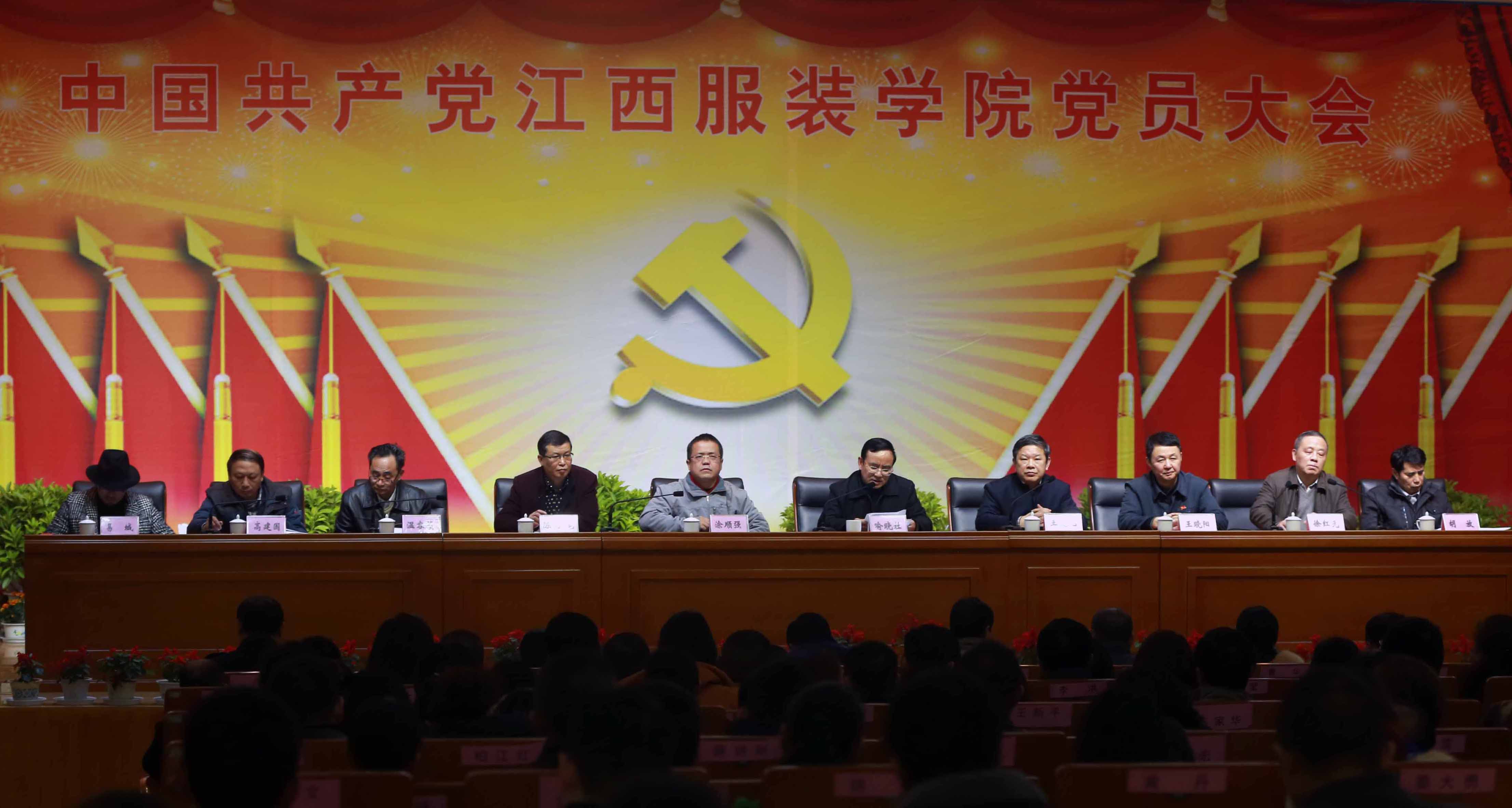 服装报讯(文/朱雨春 摄影/万强 杨金鑫) 根据《中国共产党章程》及《中国共产党基层组织选举工作暂行条例》有关规定,经省委教育工委同意,11月29日,中国共产党江西服装学院党员大会在思贤楼隆重举行。省委教育工委副书记、省教育厅副厅长喻晓社出席大会并致贺词。省政府督导专员、党委书记王建元向大会作工作报告。党委副书记徐红先主持大会。在主席台就座的领导有:省委教育工委组织部部长、教育厅人事处处长王晓阳,我校副理事长涂顺强、校长陈万龙、副校长温容帧、党委副书记高建国、副校长胡放、校长助理易城。全校229名正式党员以及60名预备党员参加了大会。