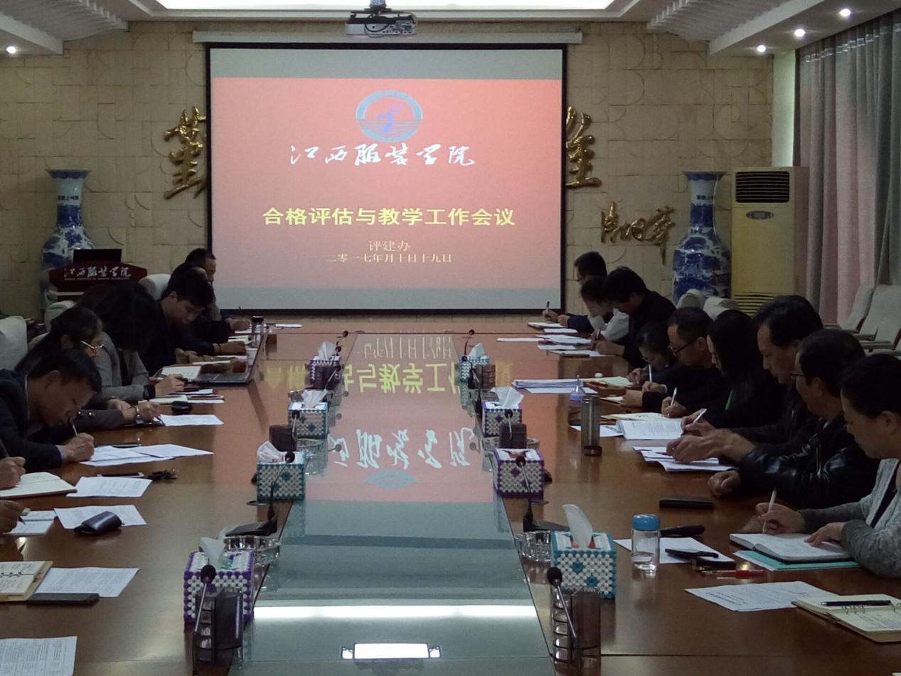 服装报讯 10月19日下午,我校在行政楼第一会议室召开了合格评估与教学工作会议,校长陈万龙,副校长、评建办主任陈东生,评建办副主任段婷、周文辉出席会议并讲话。段婷主持会议。
