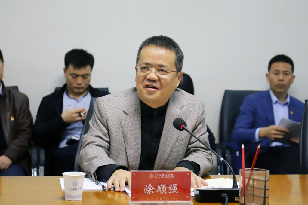 新闻中心讯:根据省委教育工委、省教育厅关于在全省高校开展2019年度思想政治工作检查的通知要求,10月22日,由江西财经大学纪委书记杨建林一行七人组成的高校思想政治工作质量测评组来到我校开展思政工作测评,双方在行政楼二楼会议室举行了见面会。理事长涂顺强、校务委员会副主任涂燕萍等在家校领导,相关职能部门主要负责人出席见面会。见面会由党委副书记高建国主持。