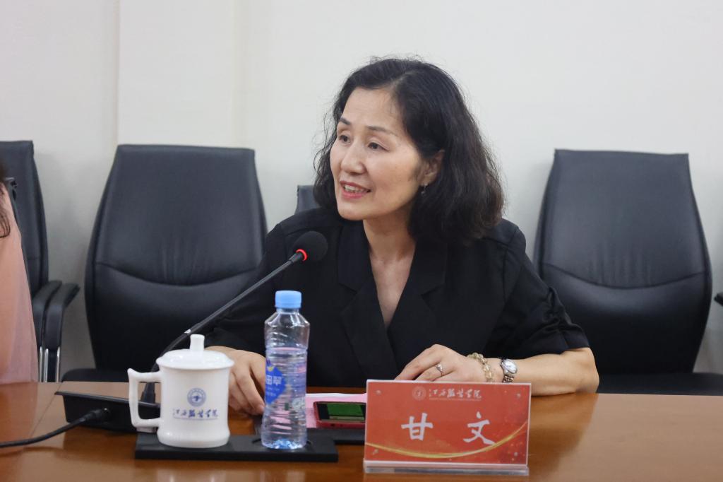 河北传媒学院校长李锦云对我校的热情接待表示感谢,介绍了河北传媒学院的基本情况,详细分享了学校办学和硕士授权单位建设工作中的经验做法,并对我校做好申硕建设工作提出了很多中肯建议。李锦云谈及河北传媒学院在办学过程中面临的诸多困难,通过一直保持“敢为”的进取精神,持之以恒的奋斗精神,不断加强自身建设,实现了河北传媒学院十几年间从职业学校向硕士学位授予单位升级的跨越式发展。李锦云表示对我校申硕充满信心,相信江服在薛家宝校长的带领下,在这样的跨省合作、帮扶推进下,阔步向前,必将书写民办高校新的辉煌!