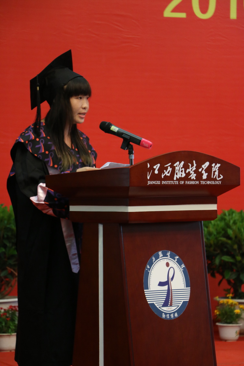 新人奖“王中之王”获得者、服装设计分院学生韦艳梅,艺术设计分院学生陶梓禾深情回顾了大学四年的生活与学习,代表毕业生表达了对母校的感恩之情。
