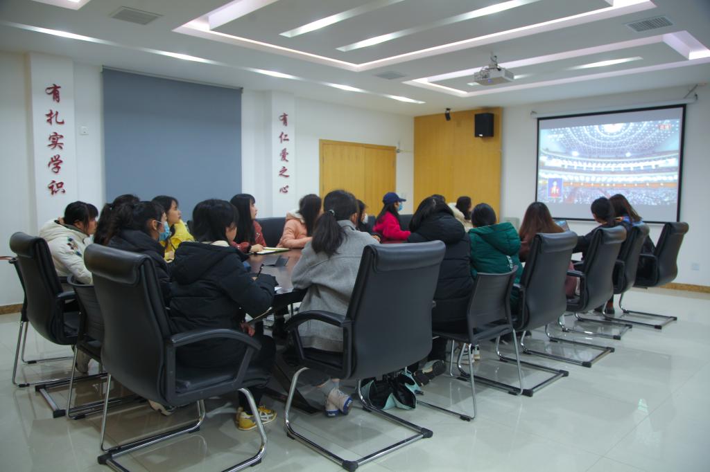 校领导及部分师生代表观看两会直播