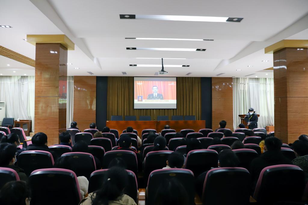 新闻中心讯 3月4日、5日,全国政协十三届四次会议和十三届全国人大四次会议先后在北京开幕。江西服装学院师生高度关注“两会”召开,为及时学习贯彻会议精神,3月5日上午九时,校党委书记陈付龙及在家校领导、各学院党总支书记(副书记)、各学院师生代表100余人在行政楼一楼报告厅集中收看了两会直播。同时,各学院分别安排分会场组织师生收看了大会盛况。其他有课的师生在会后积极通过电视、网络、广播、手机客户端等渠道,收看收听“两会”盛况,关注“两会”动态,并结合工作、学习实际,热议政府工作报告。