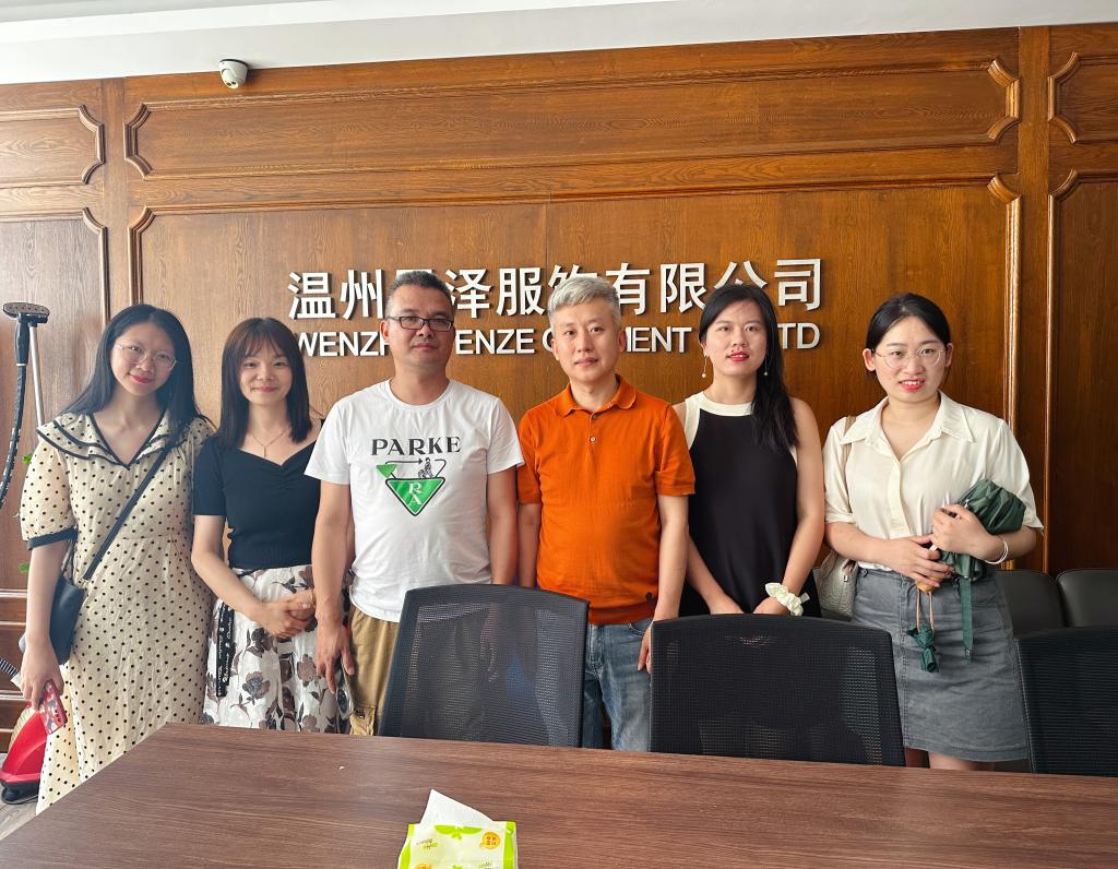 就业处副科长江春红带领大家到2002届校友丁明涛企业——温州恩铭服饰有限公司,1996级校友曾大际企业——佐宾堡服饰有限公司进行参观。江春红介绍了学校最新的办学成果,并热情邀请几位校友能在百忙之中返回母校看看。双方就深化校企合作,在人才支撑、学生实践和技术服务等方面进行了交流。随后,一行人员还到温州吉贵服饰,看望了在该企业工作的校友并进行了交流座谈,校友们分享了在企业的工作和成长经历,江老师表达了母校对校友的问候和关怀,向校友们介绍了学校近年来的建设和发展成就,勉励校友们要立足岗位,积极工作,为公司发展作出应有贡献。