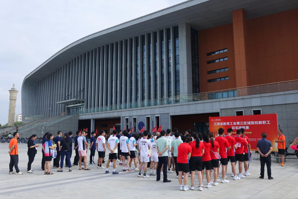 新闻中心讯(校工会供稿)为加强省教育工会第三区域各院校之间的沟通交流,丰富教职工体育文化生活,进一步促进各院校教职工身心健康,由江西省教育工会主办、江西服装学院承办的第三区域各院校教职工羽毛球联赛,于9月21日—22日在江西服装学院体育馆举行,来自第三区域的9所院校近70余名运动员参加了比赛。联赛开幕式上,赛事工作组委会主任、江西服装学院党委副书记、副校长、工会主席李宝君及各兄弟院校领导出席联赛开幕式。开幕式由江西服装学院工会常务副主席廖小华主持。