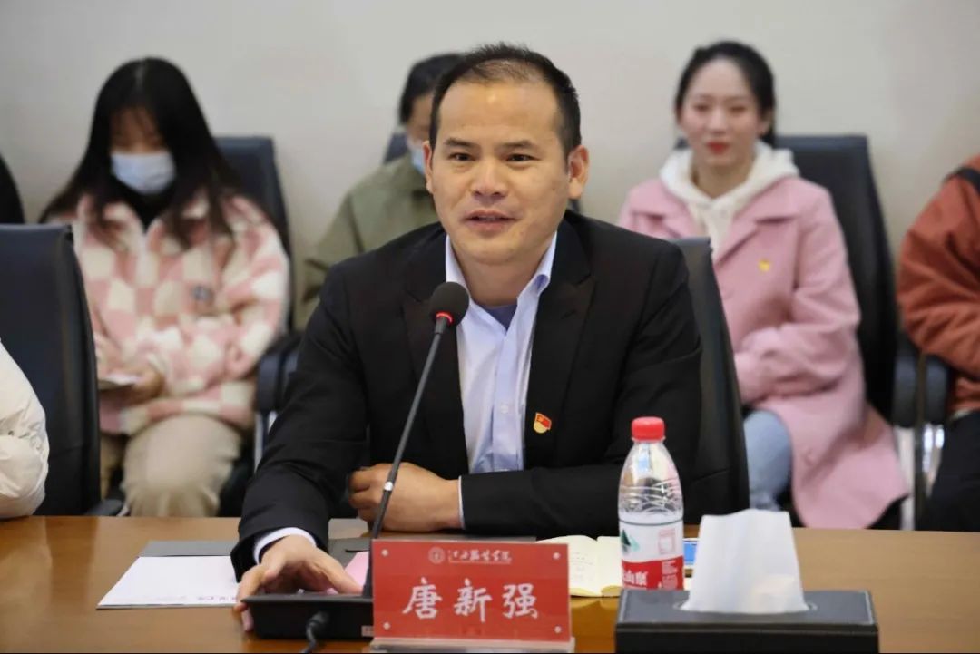 校党委副书记唐新强代表学校对赵晨一行表示热烈欢迎。唐新强向全体与会来宾用“三大”、“三特”、“三美”介绍了我校办学特色及亮点,从“高配置、高投入、高要求”三个方面表达了学校党委对共青团工作的高度重视和大力支持。
