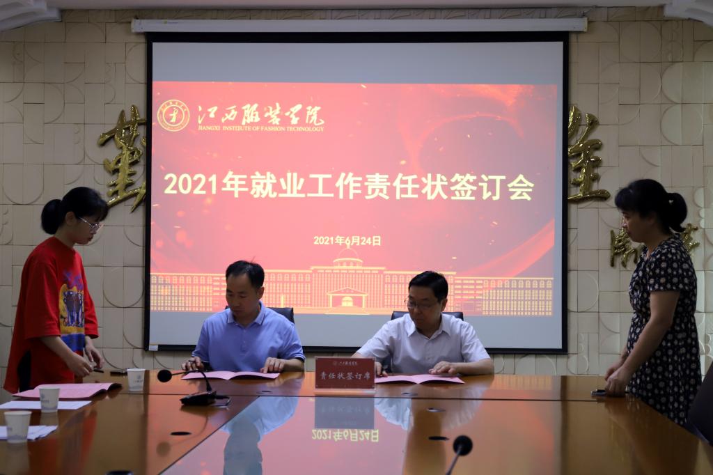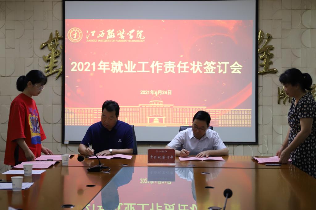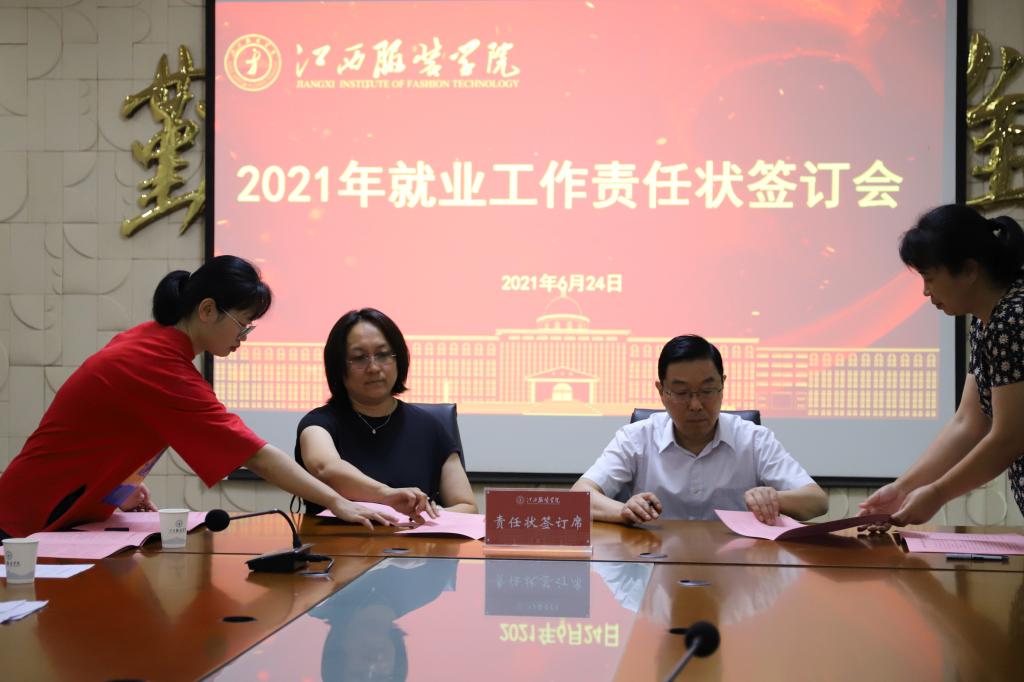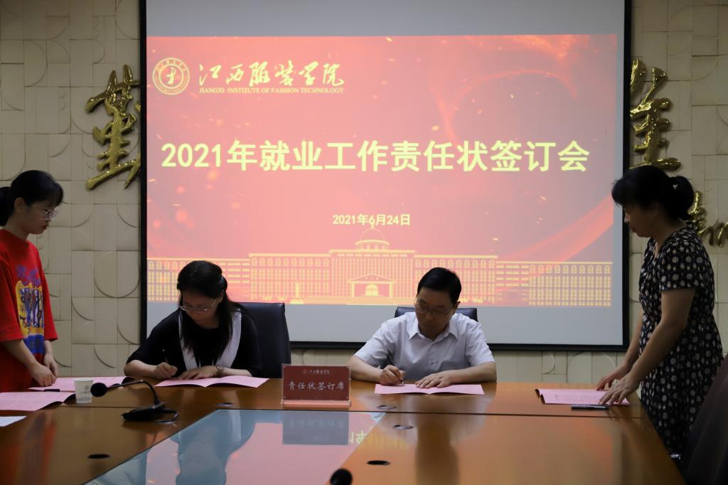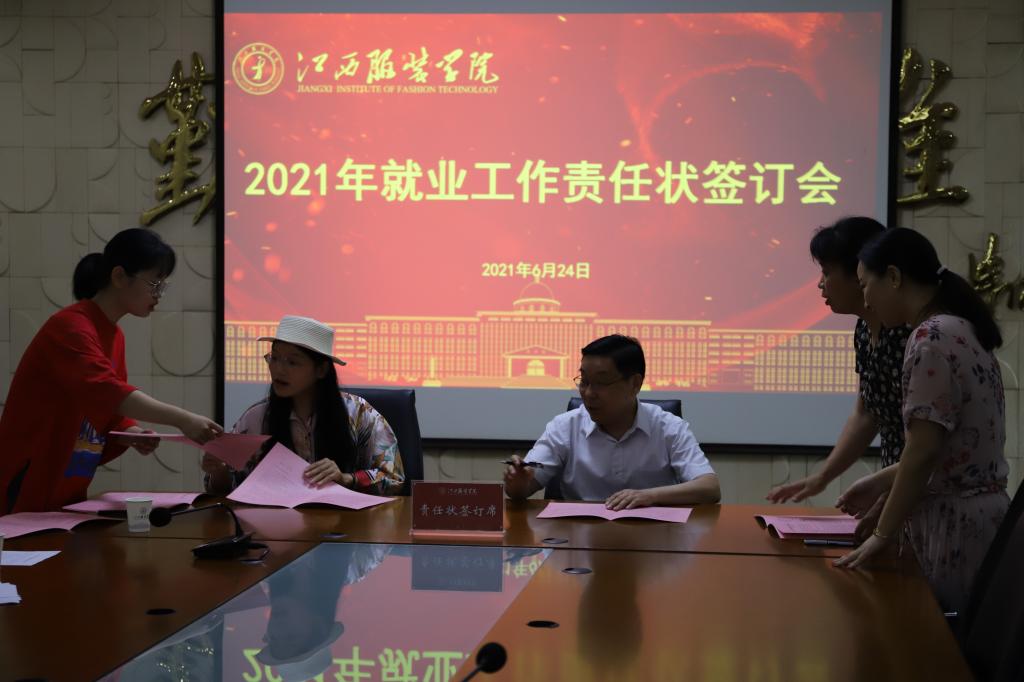最后,薛家宝校长代表学校分别与各学院院长签定了就业统计工作责任状。