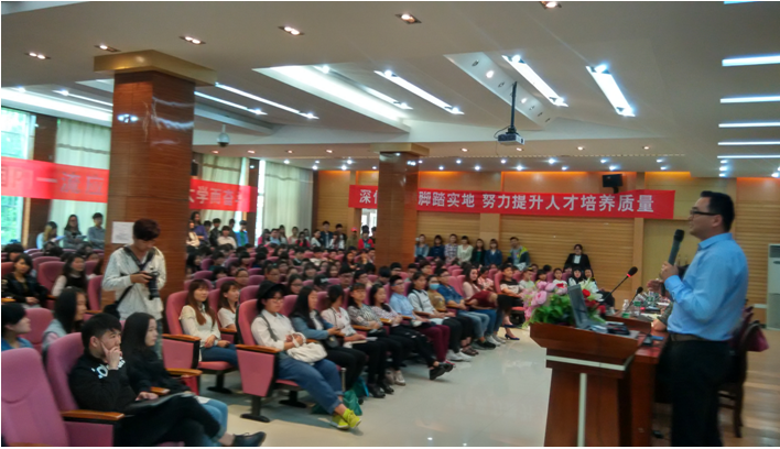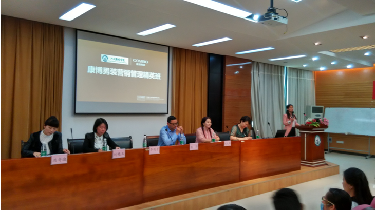 学通社讯  5月11日,波司登集团康博男装副总经理陈涛来校为波司登营销管理订单班进行招聘宣讲,这是今年订单班校园招聘启动以来的第二个来校企业。