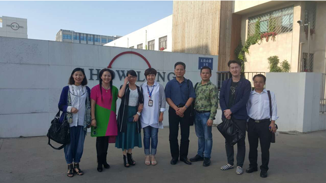 中国最著名的服装设计师汉德服装董事印柏林在给走访团讲解