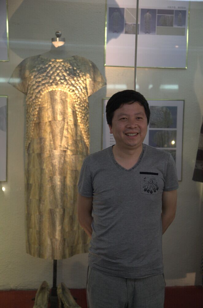 据了解,这件名为《川流不息、渊澄取映》的作品由袁大鹏教授花费半年时间设计制作,用600多条明太鱼皮拼接而成,重达3斤。该作品获得第十二届全国美展艺术设计类服装与服饰设计作品大奖,并分别在北京中国美术馆和上海、山东等地巡展,引起轰动。