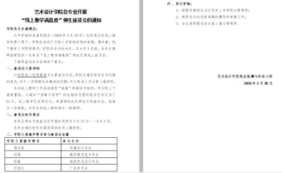 图1 艺术设计学院各专业开展“线上教学满意度”师生座谈会的通知