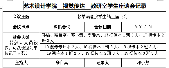 艺术设计学院各专业召开有关“专业教学质量满意度”师生代表线上座谈会