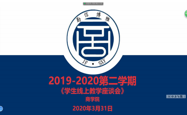 为更好了解线上教学过程中学生遇到的问题,确保在新冠疫情下商学院的教学工作有效进行,3月31日下午,商学院组织召开了第二学期学生线上教学座谈会。参加本次会议的有副院长陈淑云、院办主任蔡芬、学工办副主任欧阳耀诚、各教研室主任、院督导以及教学秘书,会议由副院长陈淑云主持。来自分院每个非毕业班的学生代表围绕线上教学心得体会及意见与建议进行了交流发言。