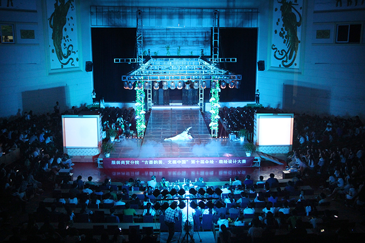 服装报讯(记者 徐梦翔 洪丽奇)5月27日晚,由我校服装商贸分院主办的第十届“伞绘扇绘”设计大赛暨颁奖典礼在霓裳宫隆重举行,我校副校长胡放等领导与3000余名师生共同观看了本次大赛。