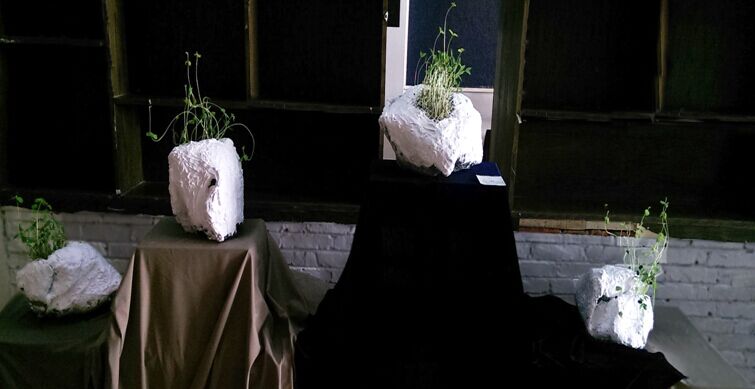 《最初的梦想》外形采用不规则白色石膏造型,绿色的豆芽和裸露的铁丝网以此形成对比,此雕塑传递了一种积极向上的生活态度。该作品作者钱致远说:“为了这个作品,前期做了很多的准备工作,就是这些豆芽是经过几批培养之后才算掌握了其生长规律,这批豆芽准备了一个星期的时间。”