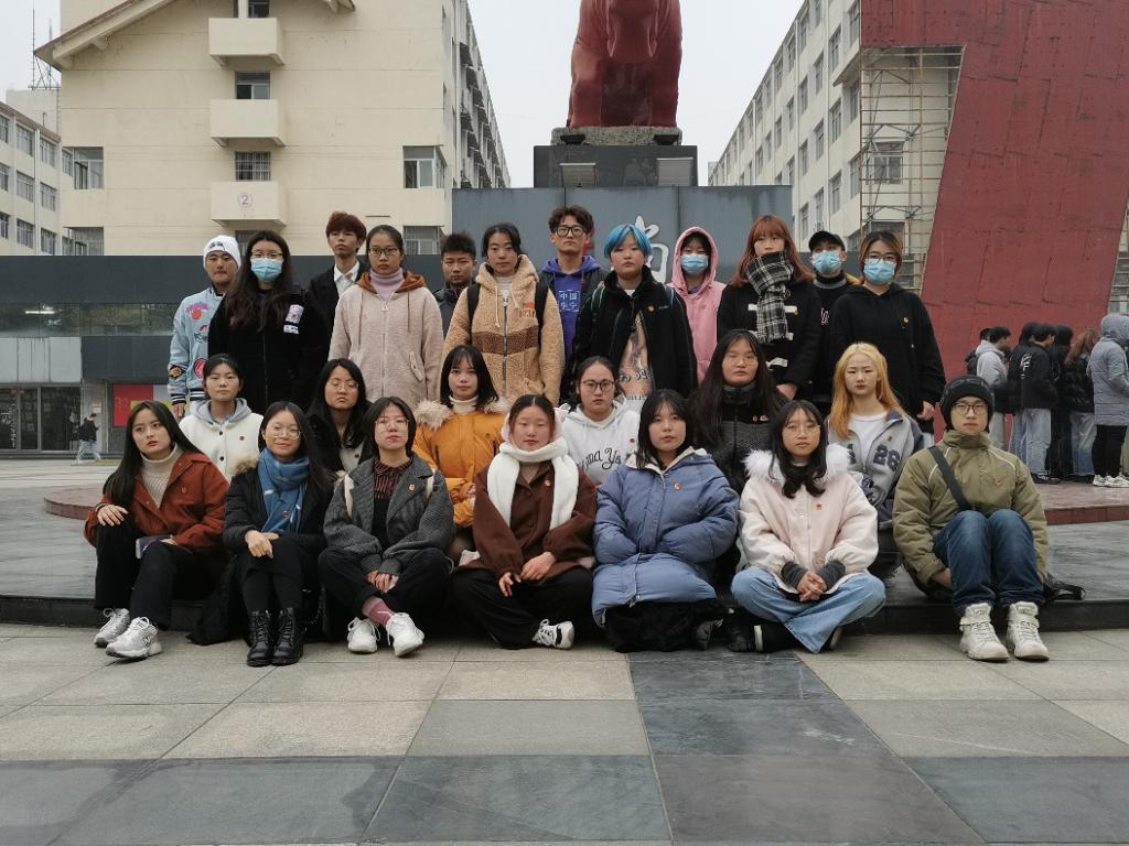 在2020年12月8日下午,服装工程学院组织团员青年在校园各处佩戴团徽合影,记录青春团员风采。