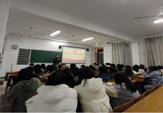 为贯彻落实习近平新时代中国特色社会主义思想,引导我院学生干部努力提高自身素质,更好的为广大学生提供优质服务,12月7日晚,人文学院在主教学楼609多媒体教室举行了人文学院第三次青年骨干培训。此次培训的主题是《高校团干的工作艺术》,主讲人为17广告本科1班江骁达同学,骨干培训班全体成员参加了此次培训。