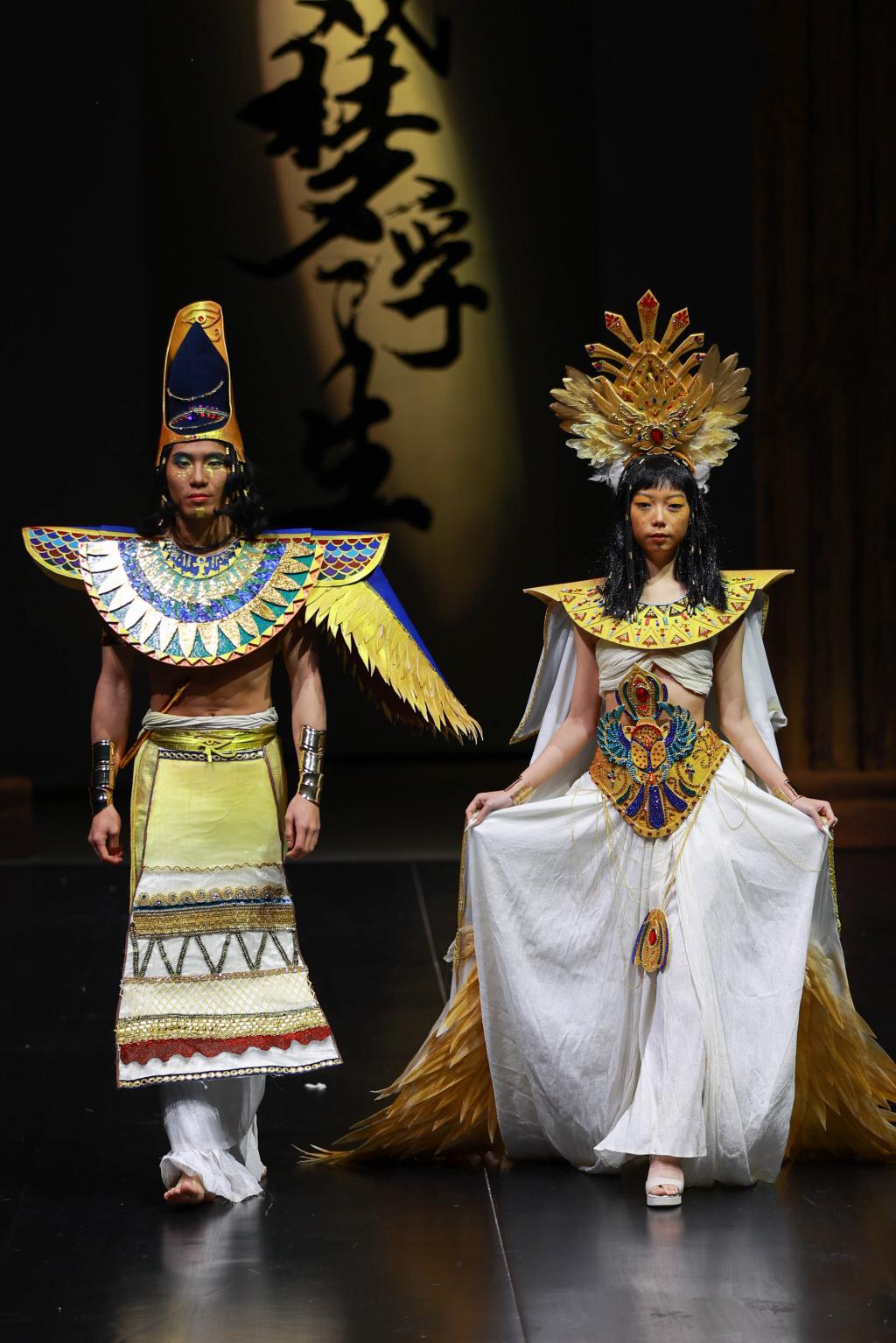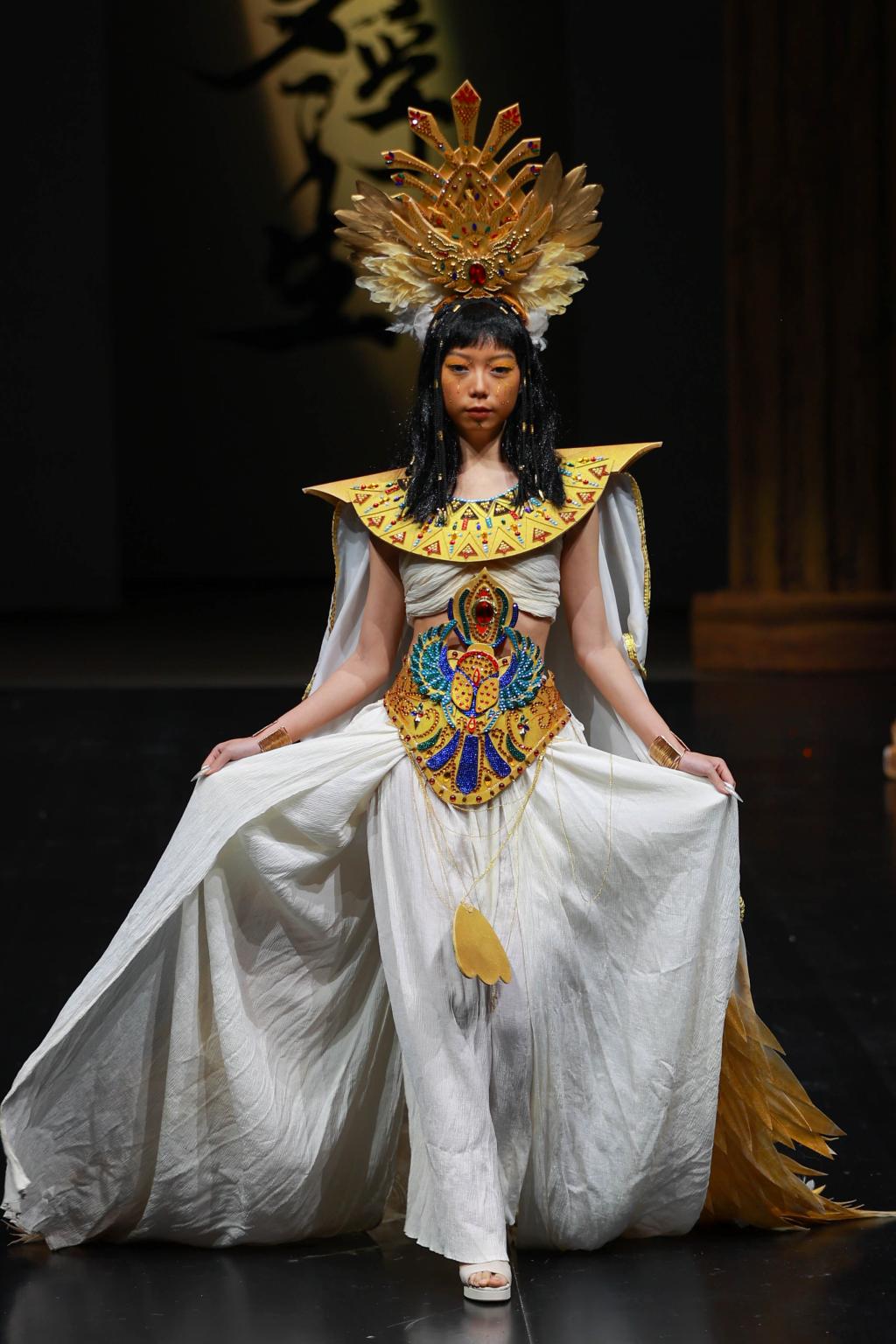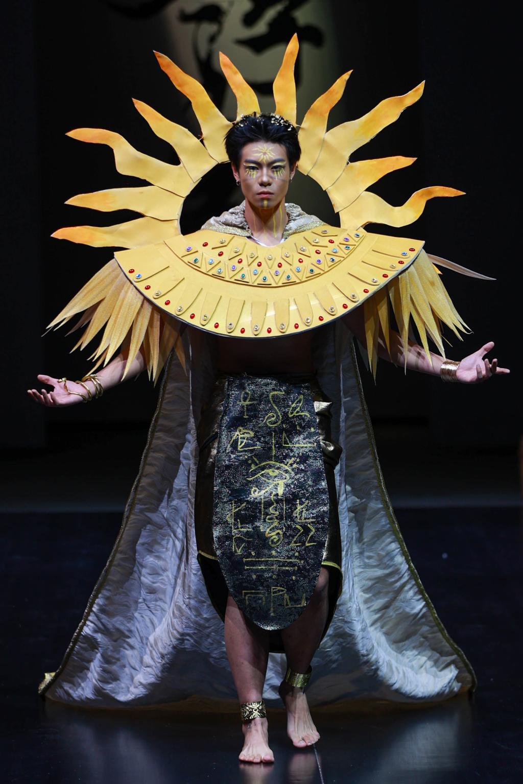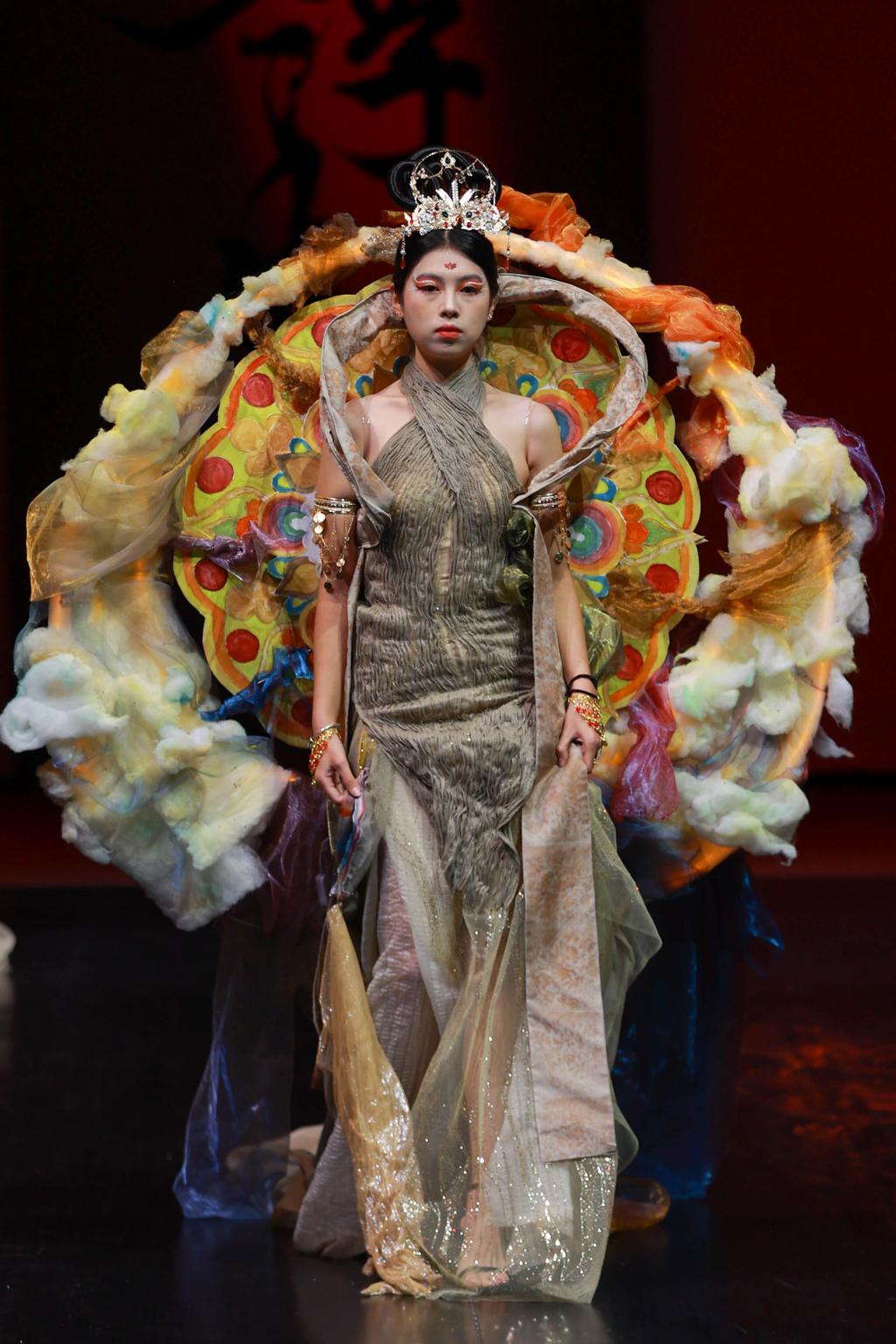 “风华正茂,国韵悠扬。”最后一个篇章的灵感来源于傩戏《傩情》、经典的《西游记》以及敦煌主题的舞剧《莲花》,它深深扎根于中国传统文化的土壤,展现出浓郁的东方风情。从敦煌的壁画到西域的传说,从古老的傩戏到《西游记》中的奇幻世界,每一件服饰都充满了浓厚的历史底蕴和文化韵味。通过服装和化妆的精致演绎,我们将一同感受中国古典艺术的博大精深,走进那一幅幅如诗如画的历史长卷。