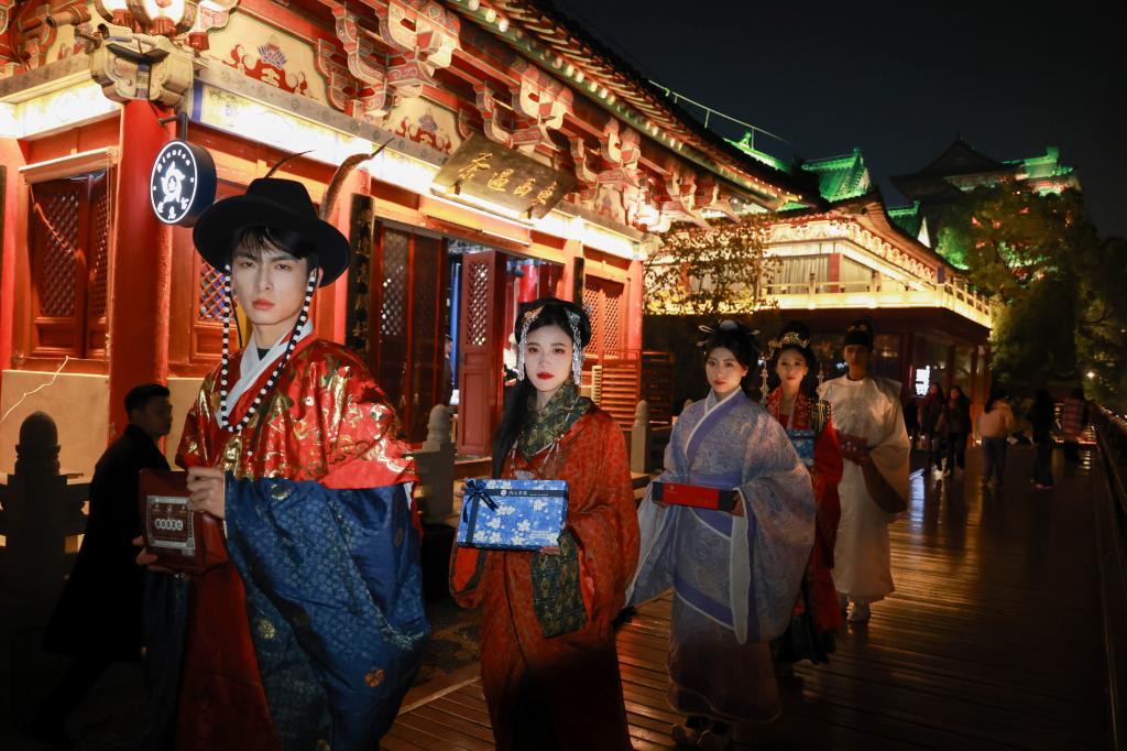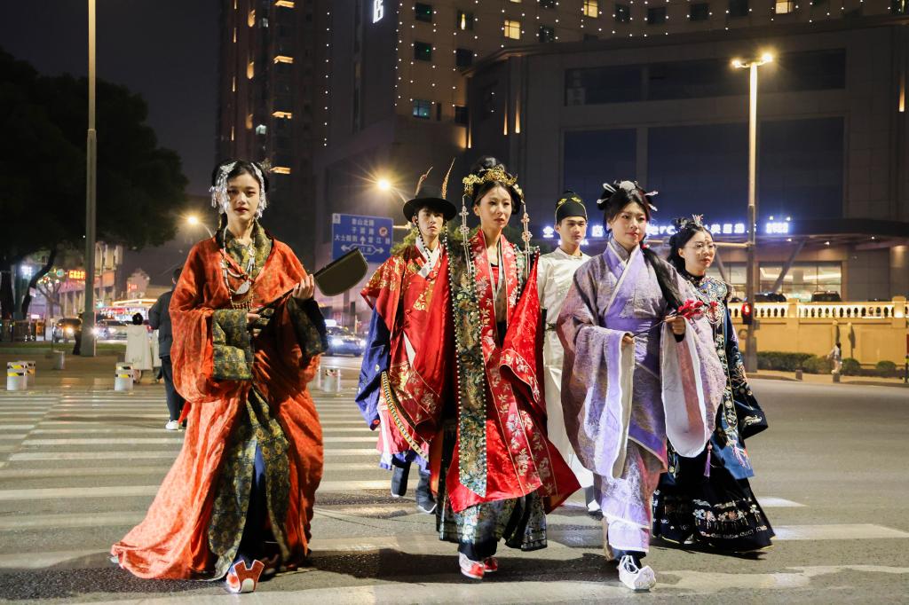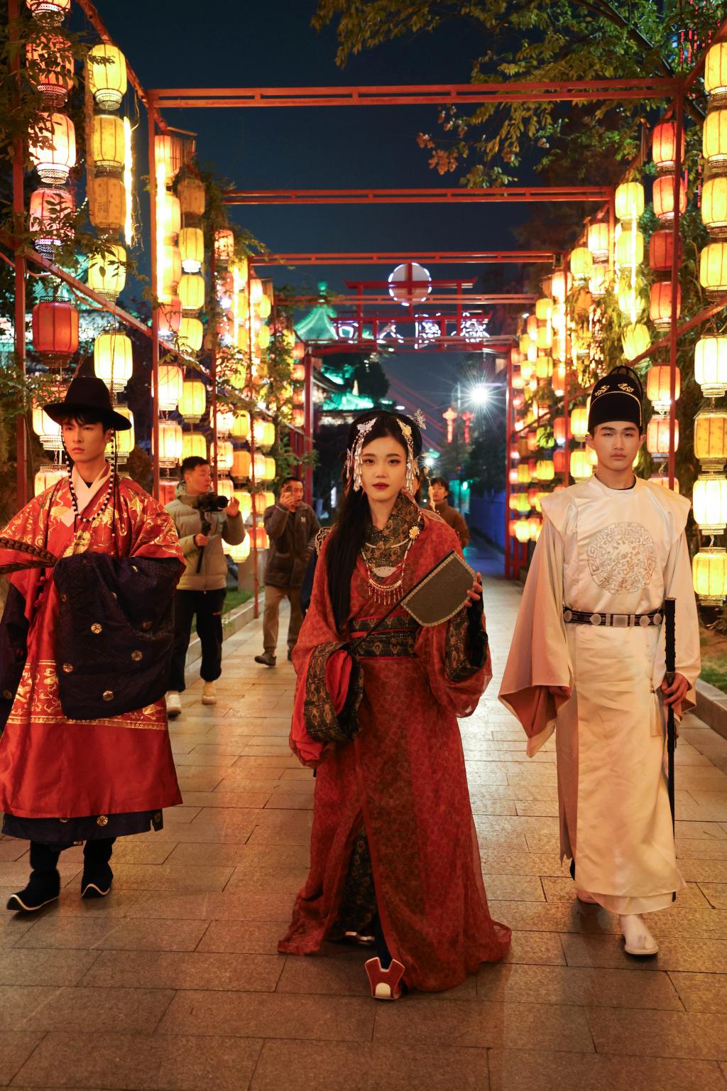 活动以“东湖夜青春跃动,南昌韵古今交融”为主题,在南昌市东湖区滕王阁北园、大士院举行。青年们身着各式各样精美的传统汉服,迈着优雅的步伐,展示不同朝代、不同风格的汉服之美,仿佛穿越时空而来,让人感受到汉服的庄重与美丽。精彩的表演引来了众多游客们纷纷驻足欣赏,模特们也热情地与现场观众进行合影互动。