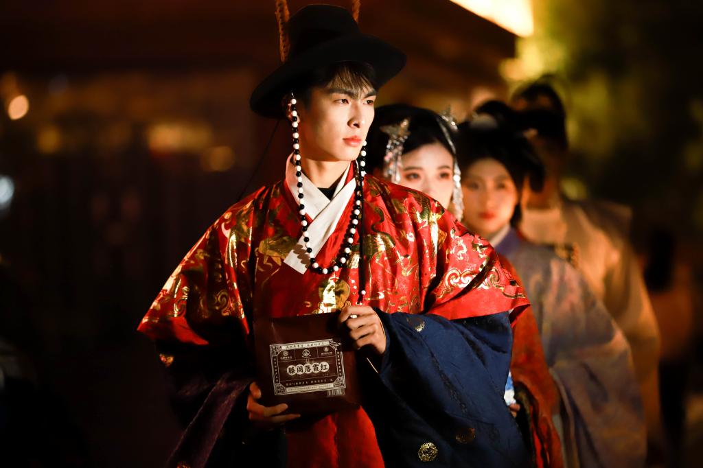 游客黄先生说:“第一次来到这个地方就碰上一场汉服走秀,感受到了我们的传统建筑与传统服饰相结合,让我感到非常的震撼,我也为我们的传统文化感到自豪。”