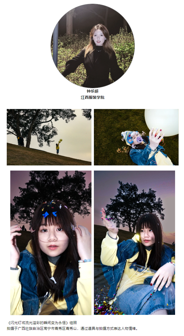 新闻中心讯(记者/刘北辰)近日揭晓的2025年“她光影·迎三八”全国女大学生摄影大赛评选结果中,我校学生喜获佳绩。来自党委宣传部大学生记者团服装报社的钟乐妍同学的摄影作品《闪光灯将流光溢彩的瞬间变为永恒》荣获“优秀作品奖”,刘慧娟同学的《xxxx》、陈梦蕊同学的《海边日落》、李俣彤同学的《身边》《生机》获评入围奖。