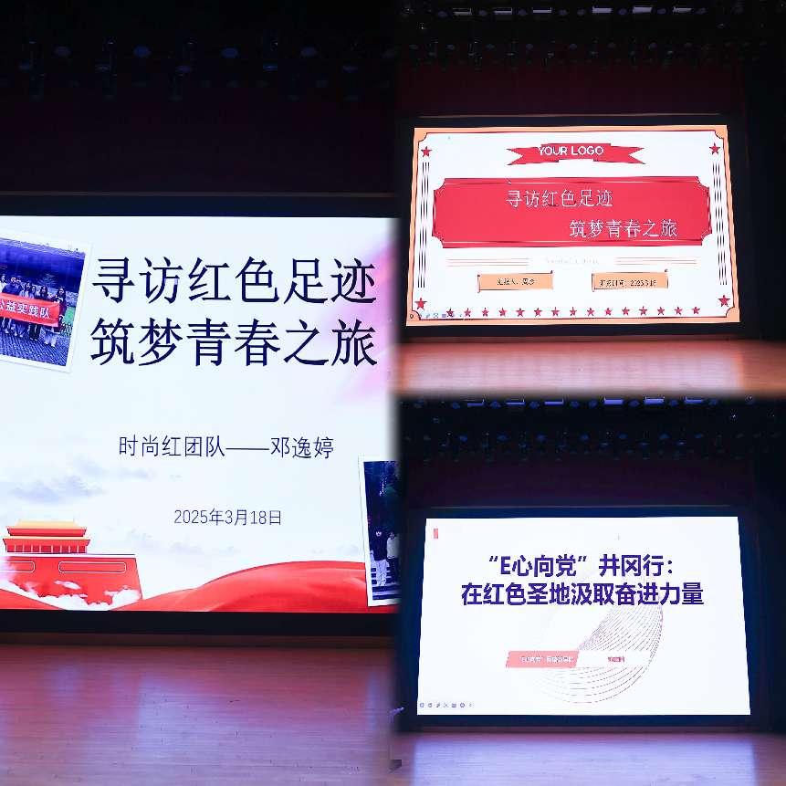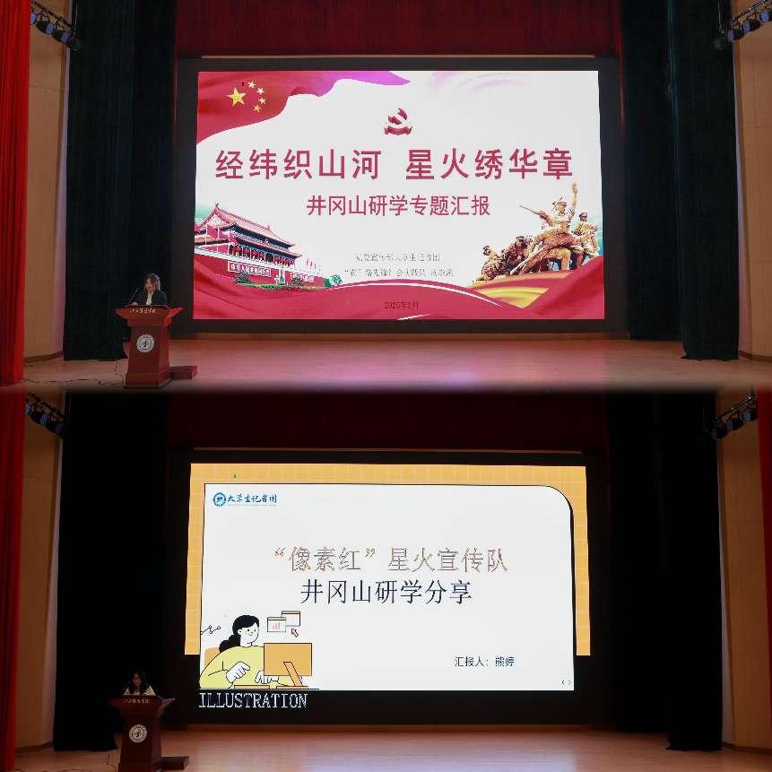 分享会上,师生代表通过视频回顾、情景讲述等形式,生动再现了井冈山红色研学之旅的难忘经历。来自大学生记者团“红纽扣·经纬星火”“E心向党”网络先锋宣导队、“时尚红”公益实践队、“衣”路先锋社会实践队、“像素红”星火宣传队的成员代表周珍、钟宏鹏、周焱溪、邓逸婷、熊婷等同学分享了在井冈山学习期间的所学、所思和所悟。研学团队先后走访了茨坪毛泽东旧居、黄洋界哨口、朱毛红军挑粮小道、小井红军医院、红军造币厂等革命遗址,通过重走红军路、聆听革命故事、体验红军生活,深刻领悟了“坚定信念、艰苦奋斗,实事求是、敢闯新路,依靠群众、勇于胜利”的井冈山精神,此次研学不仅增强了师生的历史使命感和社会责任感,更激励大家将井冈山精神融入学习和工作中,以实际行动践行新时代青年的担当,为传承红色基因、赓续革命薪火贡献力量。