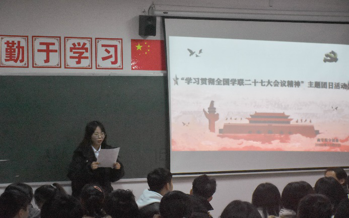 2020年8月17日,中华全国青年联合会第十三届委员会全体会议,中华全国学生联合会第二十七次代表大会在京召开。为深入学习中华全国学生联合会第二十七次代表大会的精神,2020年12月2日晚7时,商学院在主教楼304和306教室开展学习贯彻全国学联第二十七次会议精神的团日活动,此次团日活动邀请了商学院分团委书记欧阳耀诚作为嘉宾与商学院学生会各部门成员共同学习此次会议内容及精神。
