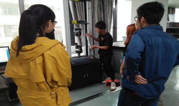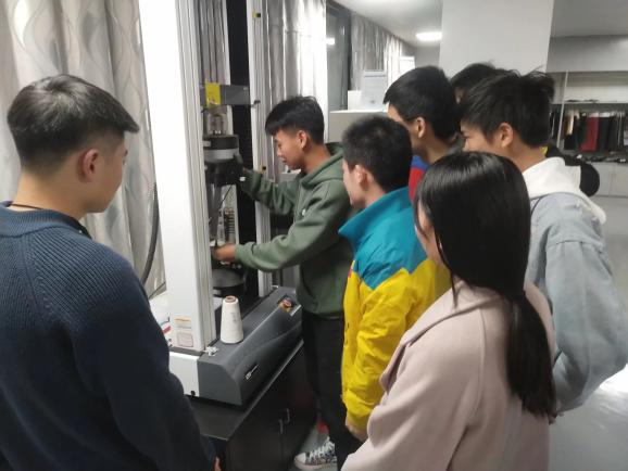 学习完软件如何操作过后,随后学习如何使用织物拉伸断裂仪器进行实验。在社团负责人示范下,同学们经过实际操作,成功的完成了织物拉伸断裂实验。