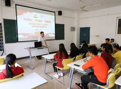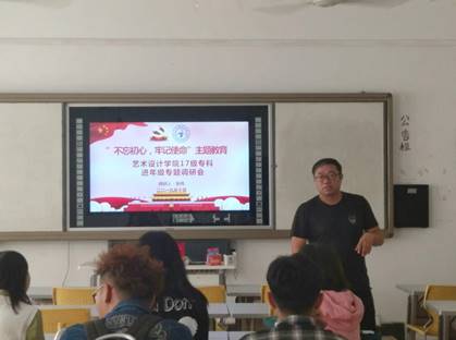 服装报讯(艺术设计学院)为深入了解习近平总书记关于“不忘初心,牢记使命”主题教育的系列重要指示精神,围绕“守初心、担使命、找差距、抓落实”的总要求,加强学院领导与学生们之间的联系,进一步促进人才培养方案的优化,10月8日,艺术设计学院领导班子成员开展“不忘初心,牢记使命”主题教育进年级专题调研会,党总支书记、院长刘琳、党总支副书记冯琼芳、副院长卢振邦、副院长付凌云、院长助理张伟、院办副主任侯娜娜、学工办副主任陈洋安及各年级辅导员。
