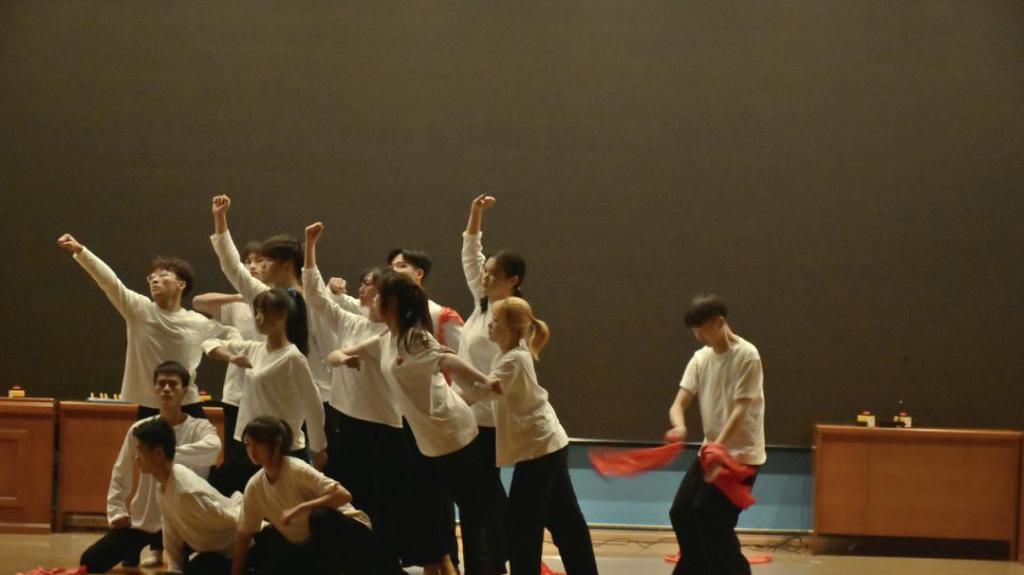 为了缓解场上紧张的氛围,中场休息时,大家共同欣赏了商学院分团委、学生会带来的朗诵节目《团结就是力量》,以及商学院文工团的精彩舞蹈表演《红》,让大家在听觉和视觉上尽享盛宴,感受中国共产党的伟大历史变革以及不屈不挠的抗战精神。