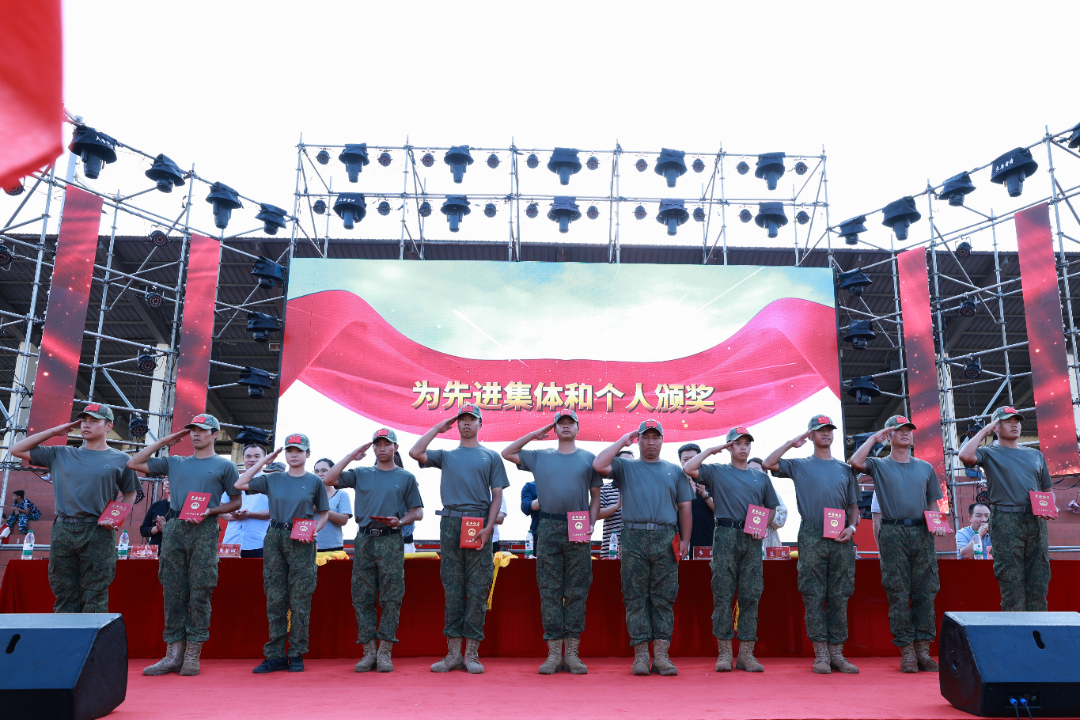 与会领导向受表彰的连队、教官、参训辅导员员和学生颁发锦旗和证书